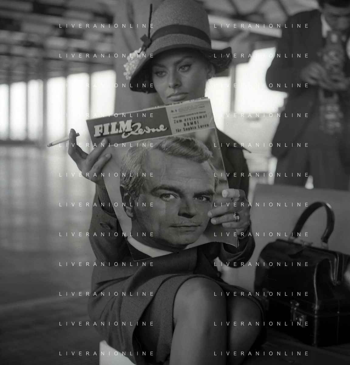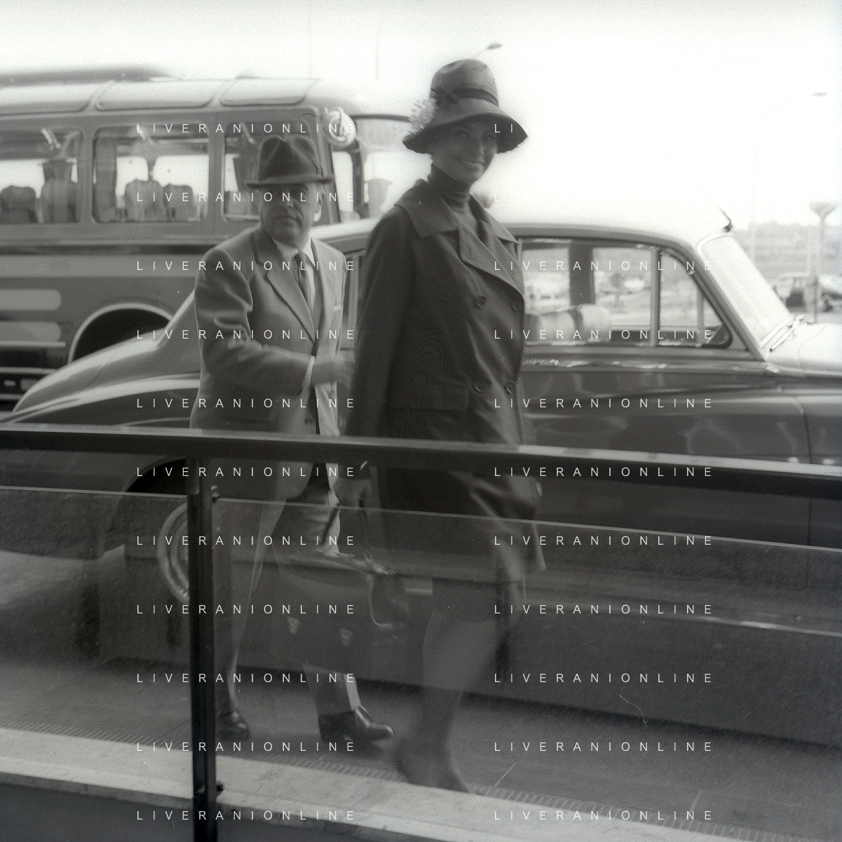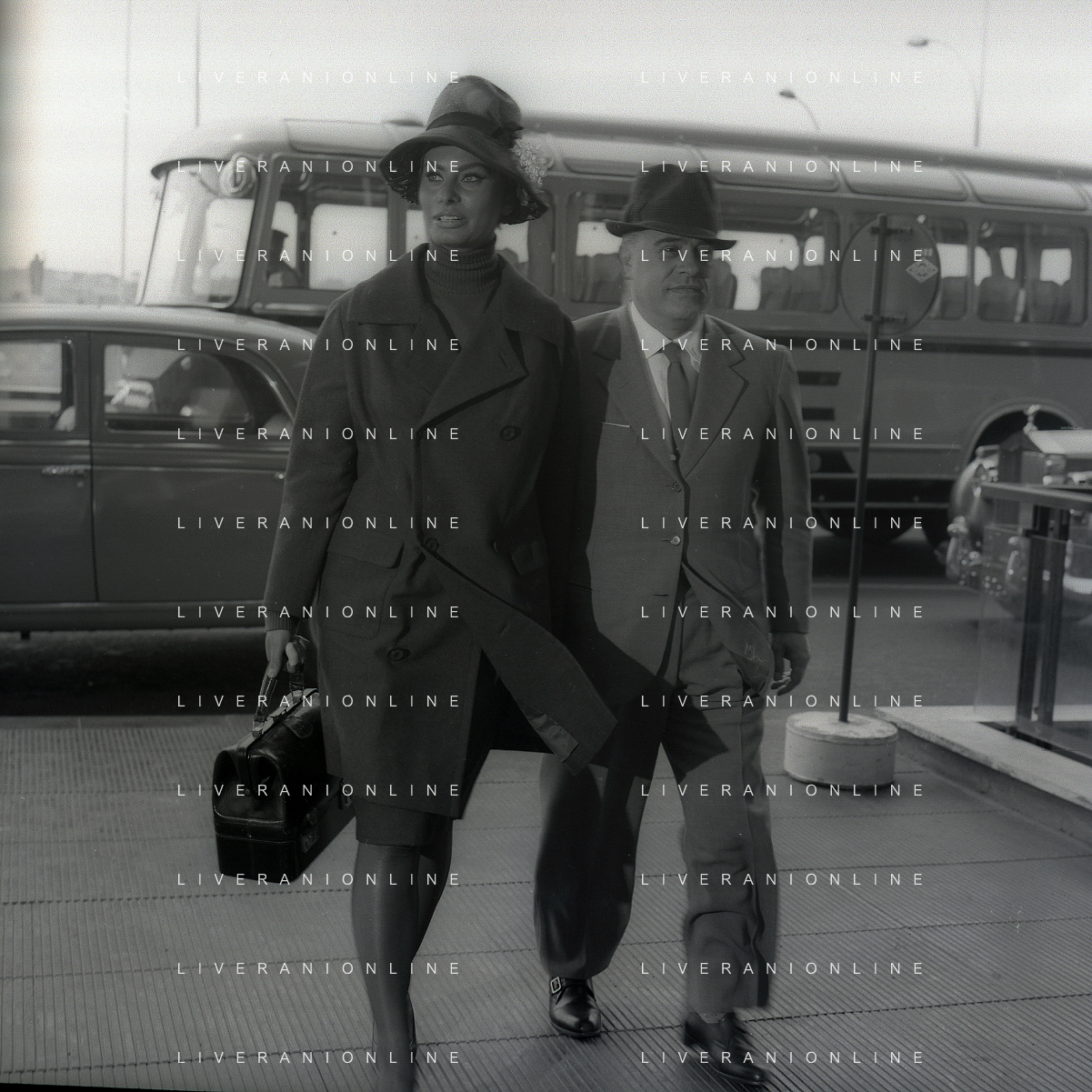 RETROSPETTIVA CARLO PONTI REGISTA NELLA FOTO CARLO PONTI NELLL'ANNO 1960 A ROMA IN PARTENZA PER MONACO CON SOPHIA LOREN FOTO SANDRO VESPASIANI-AG ALDO LIVERANI SAS