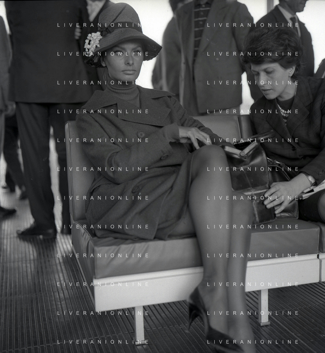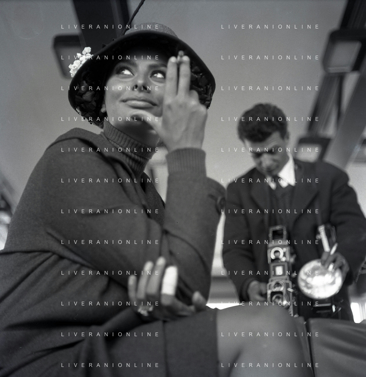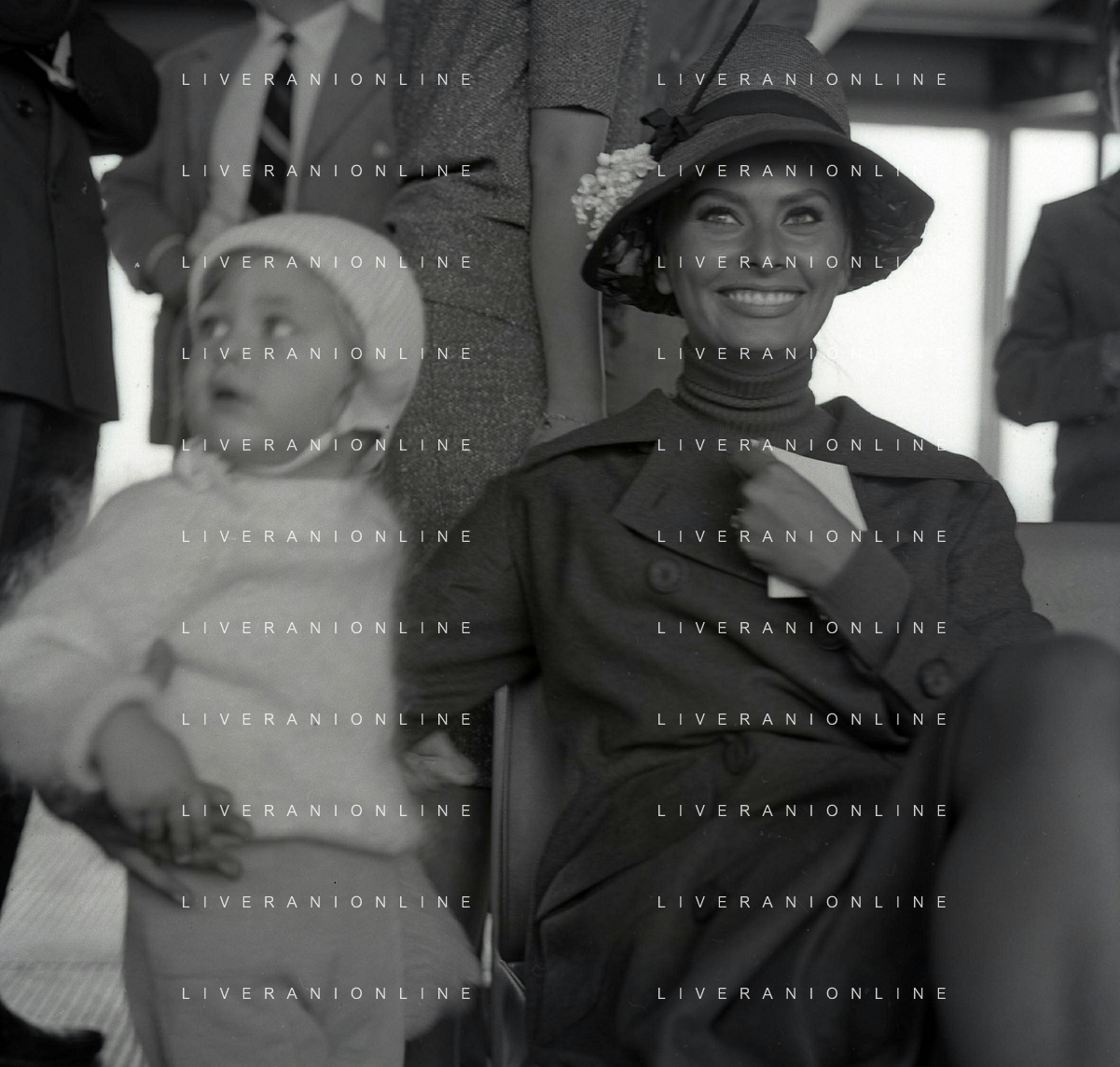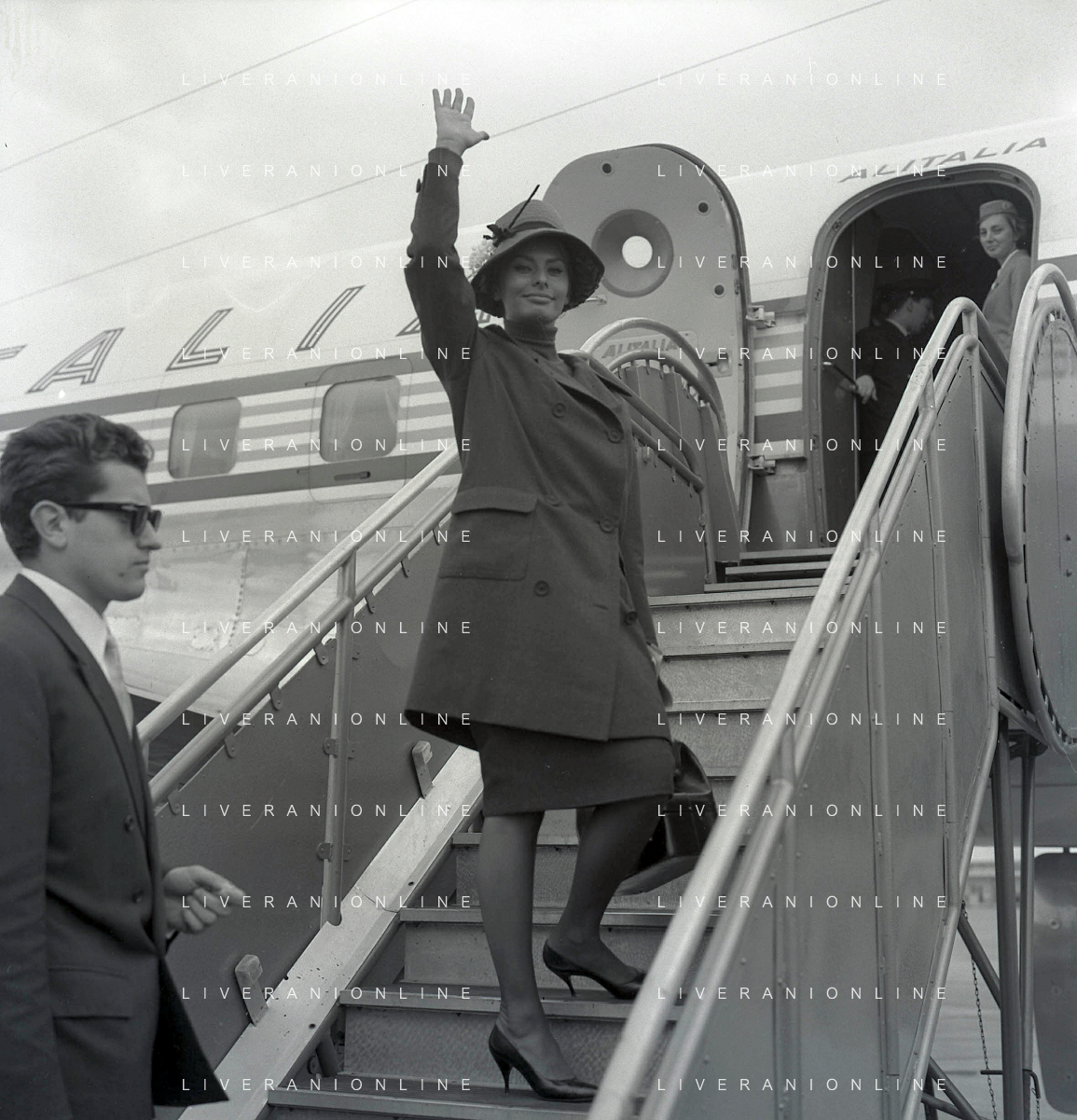 RETROSPETTIVA CARLO PONTI REGISTA NELLA FOTO CARLO PONTI NELLL'ANNO 1960 A ROMA IN PARTENZA PER MONACO CON SOPHIA LOREN FOTO SANDRO VESPASIANI-AG ALDO LIVERANI SAS