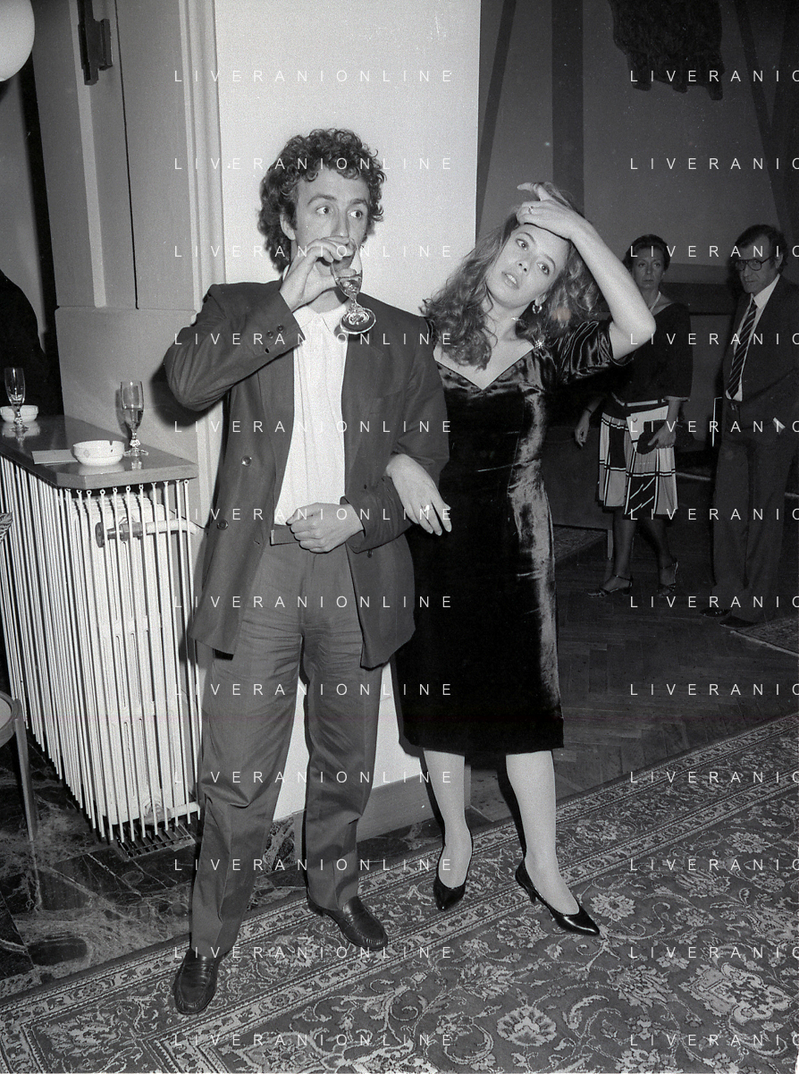 RETROSPETTIVA BARBARA DE ROSSI ATTRICE NELLA FOTO BARBARA DE ROSSI CON IL REGISTA MAURIZIO PONZI A MILANO TERRAZZA MARTINI NELL'ANNO 1983 AG ALDO LIVERANI SAS