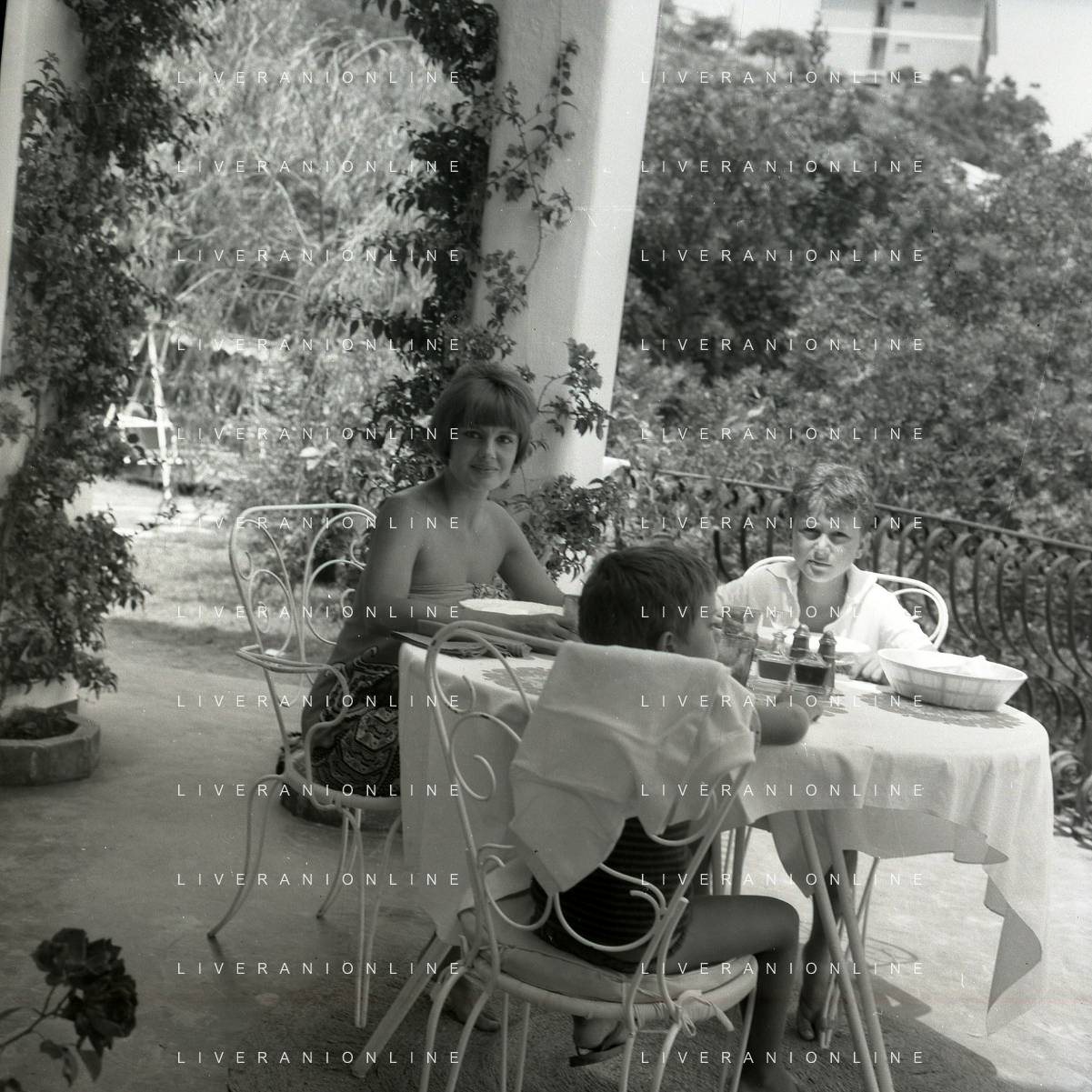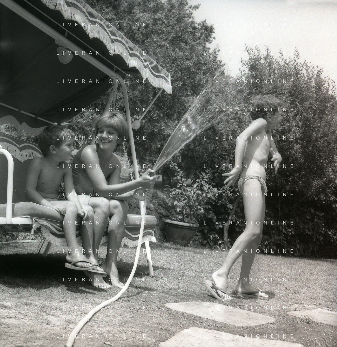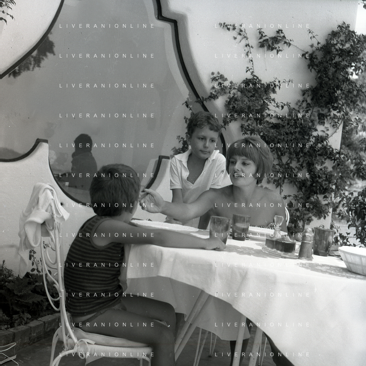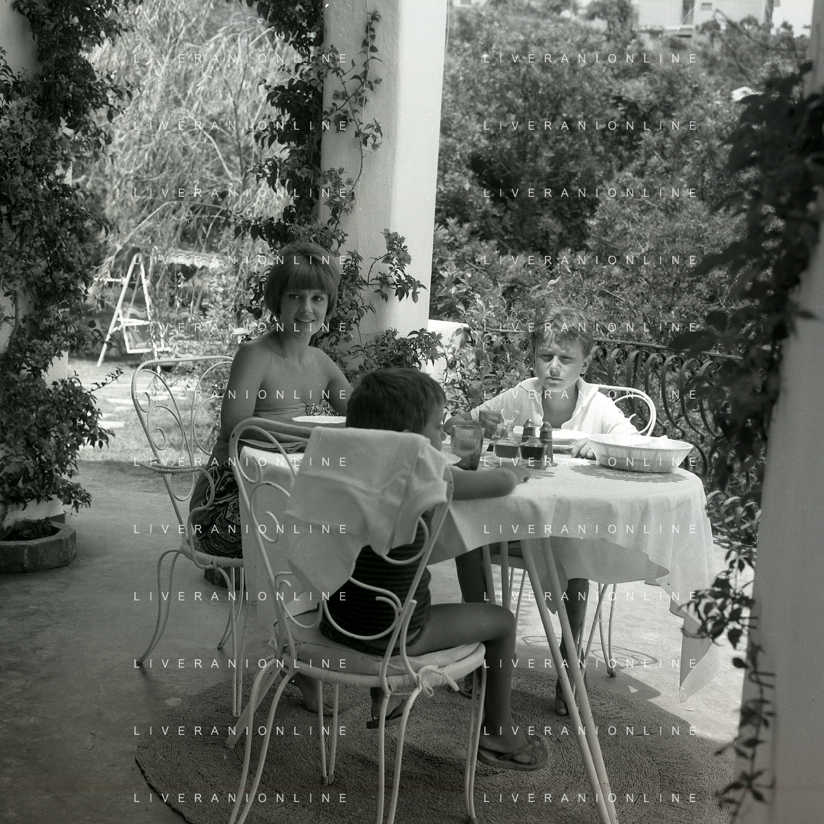 RETROSPETTIVA ROSANNA PODESTA' ATTRICE NELLA FOTO ROSANNA PODESTA' COI FIGLI FRANCESCO E STEFANO A PORTO SANTO STEFANO IL 15-06-1964 AG ALDO LIVERANI SAS
