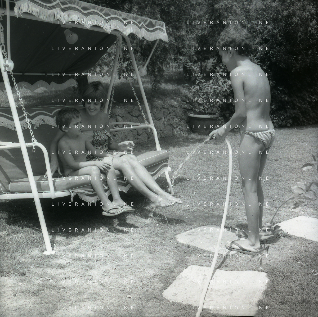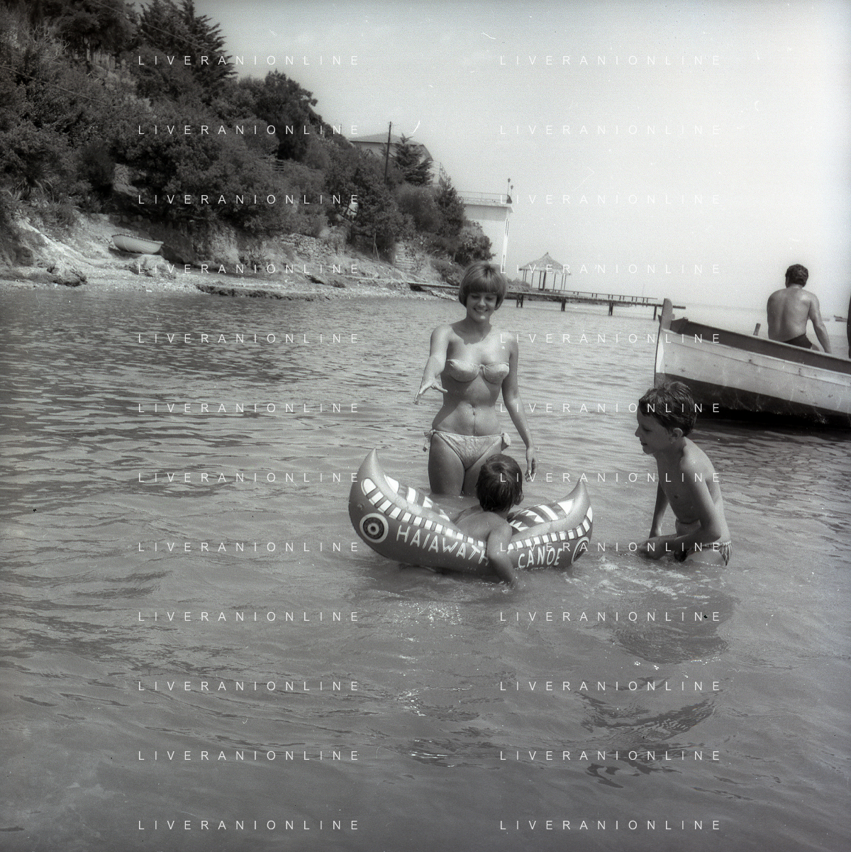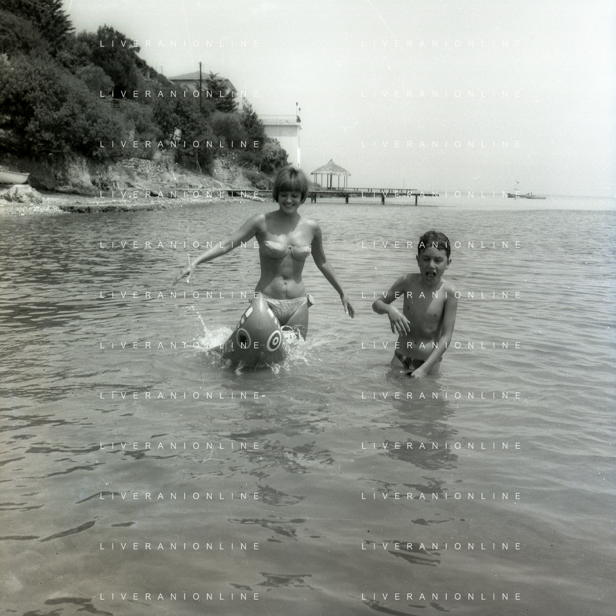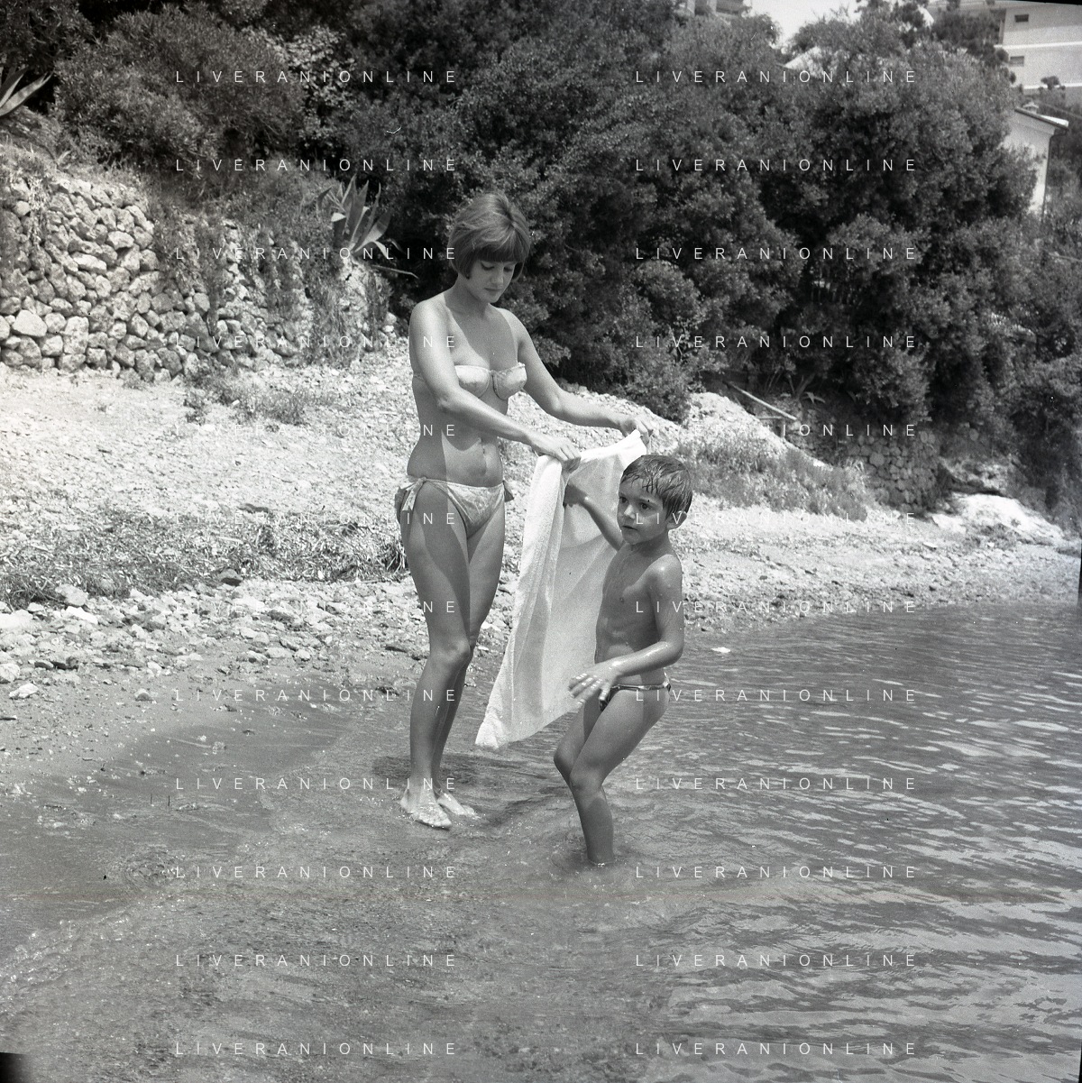 RETROSPETTIVA ROSANNA PODESTA' ATTRICE NELLA FOTO ROSANNA PODESTA' COI FIGLI FRANCESCO E STEFANO A PORTO SANTO STEFANO IL 15-06-1964 AG ALDO LIVERANI SAS
