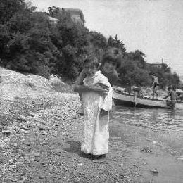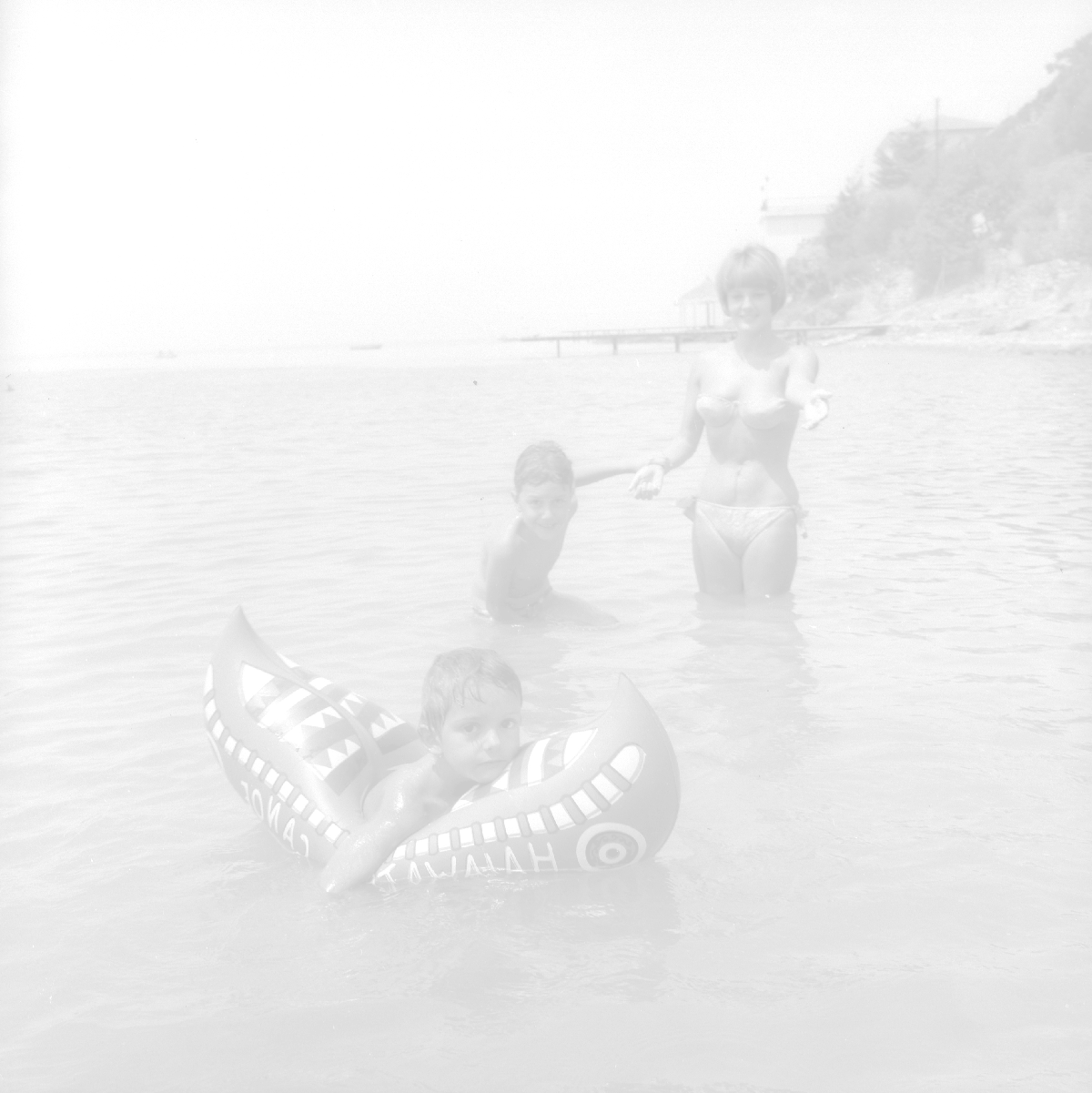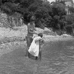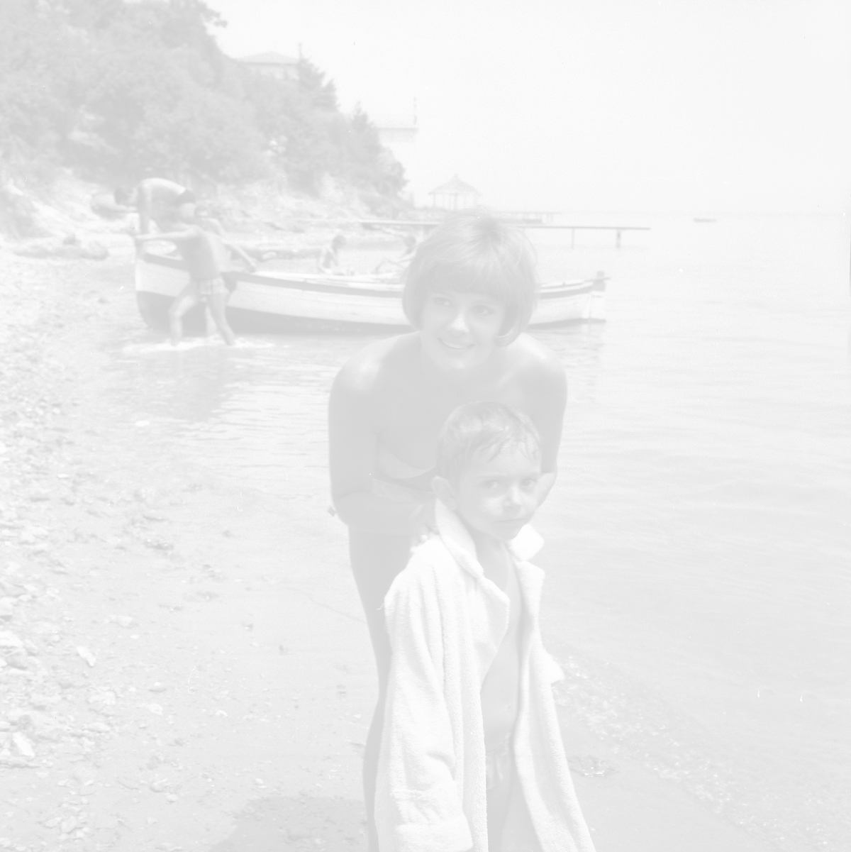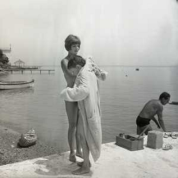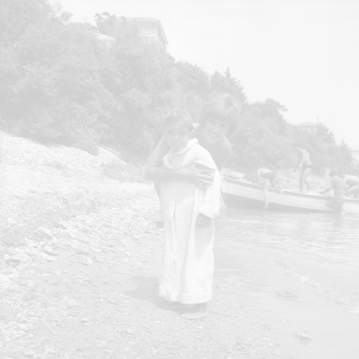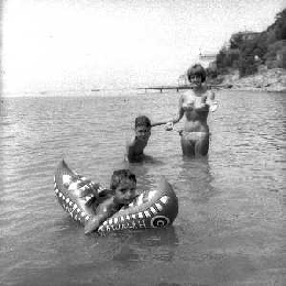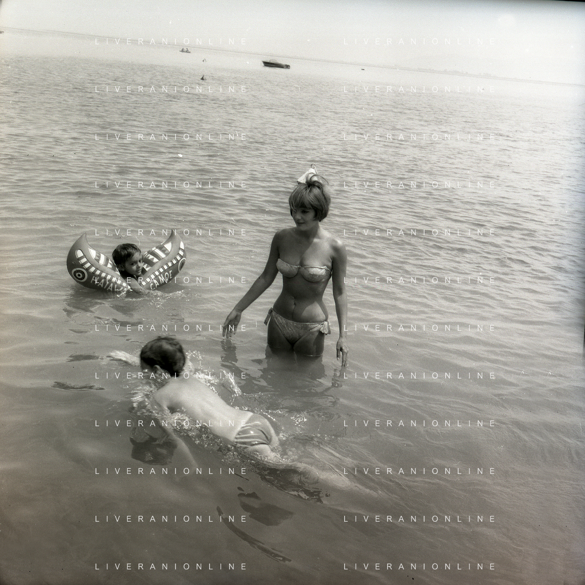 RETROSPETTIVA ROSANNA PODESTA' ATTRICE NELLA FOTO ROSANNA PODESTA' COI FIGLI FRANCESCO E STEFANO A PORTO SANTO STEFANO IL 15-06-1964 AG ALDO LIVERANI SAS
