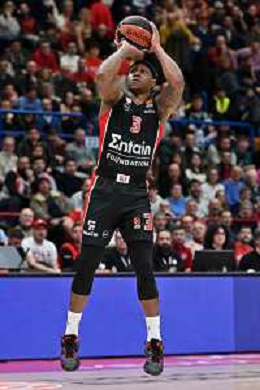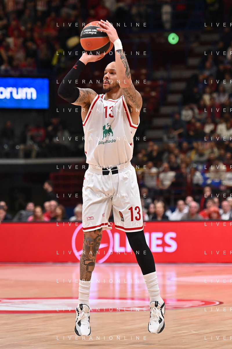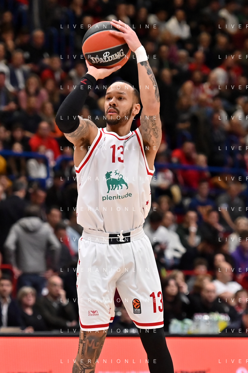 TVRG Billy Baron (Olimpia Milano) segna da 3 EA7 Emporio Armani Milano vs Olympiacos Pireo Assago (MI) 03-03-2023 Mediolanum Forum Turkish Airlines Euroleague 26a giornata regular season foto Roberto Garavaglia/ag. Aldo Liverani sas