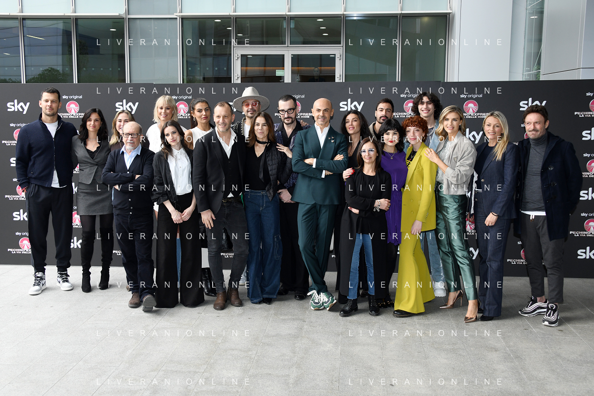 TVRG Photocall Pechino Express nella foto concorrenti e conduttori del programma con i dirigenti e produttori Sky Milano 06-03-2023 Photocall presso la sede di Sky in occasione della presentazione di Pechino Express La Via delle Indie foto Roberto Garavaglia/ag. Aldo Liverani sas / AGENZIA ALDO LIVERANI SAS