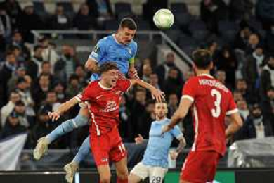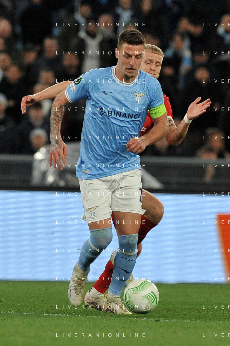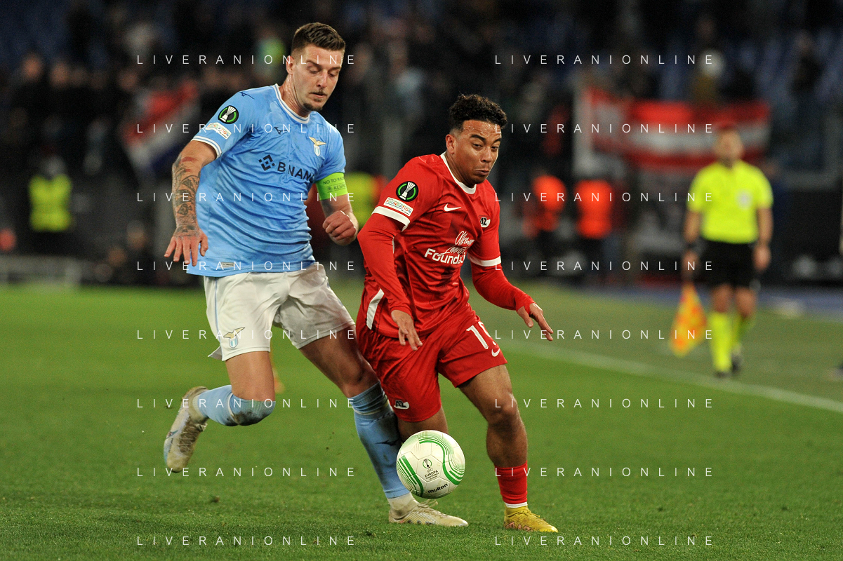Lazio vs AZ Alkmaar Europa Conference League - Ottavi di finale - Stadio Olimpico - Roma 07-03-2023 nella foto Milinkovic svetta su Karlsson foto federico gaetano-ag aldo liverani sas