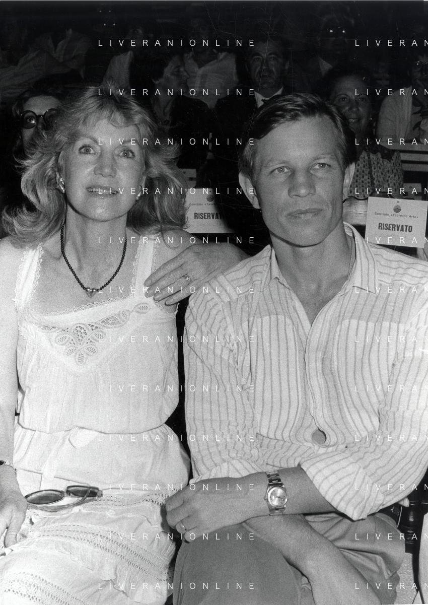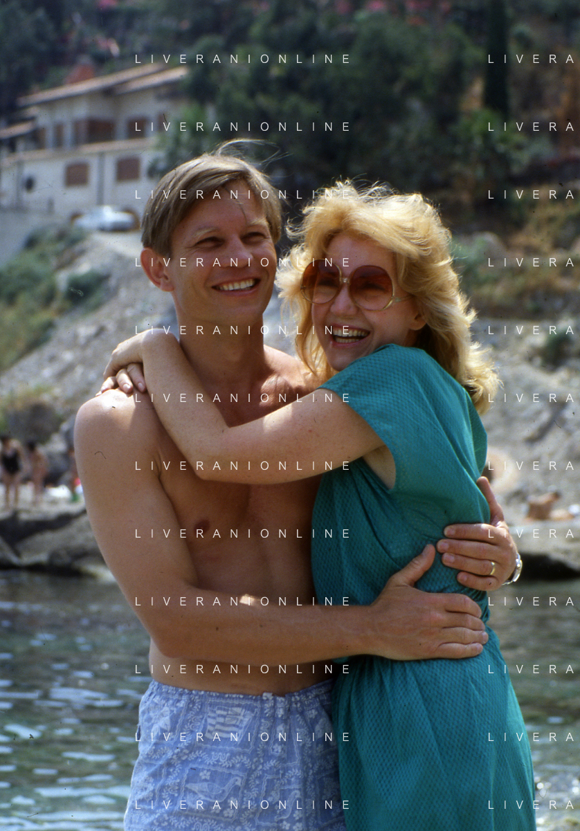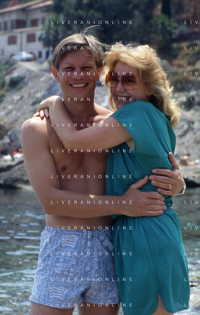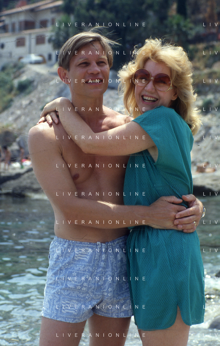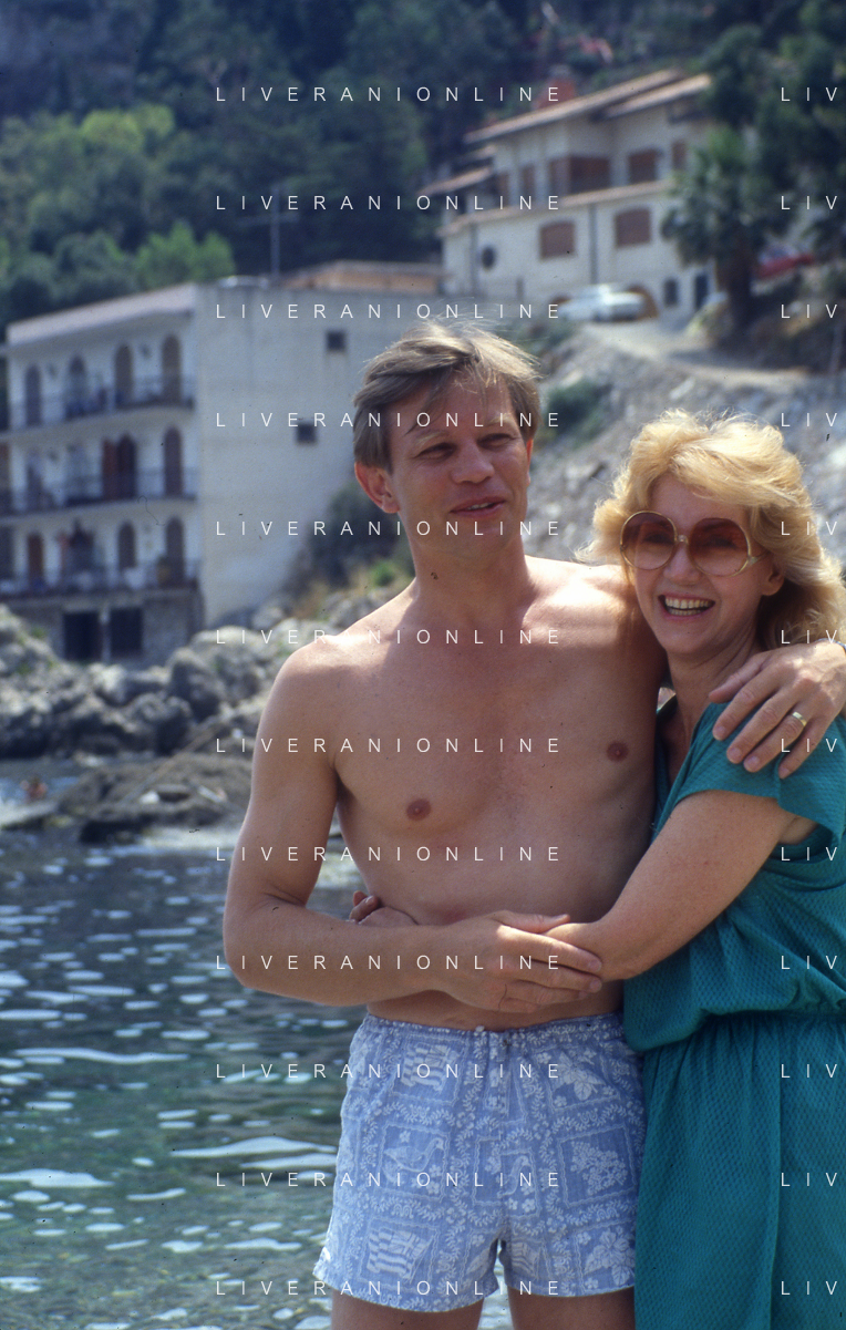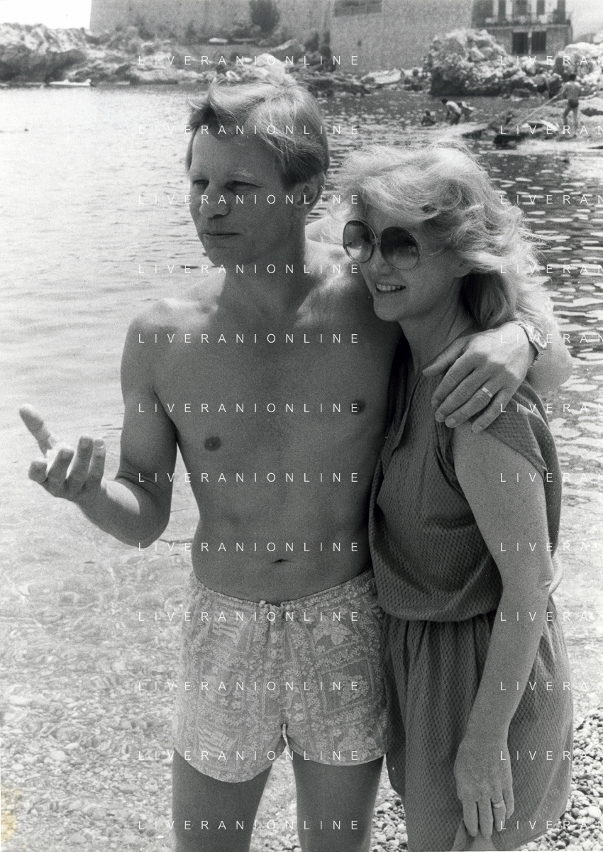RETROSPETTIVA MICHAEL YORK ATTORE NELLA FOTO MICHAEL YORK E LA MOGLIE PATRICIA Mc CALLUM A TAORMINA NELL'ANNO 1975 AG ALDO LIVERANI SAS