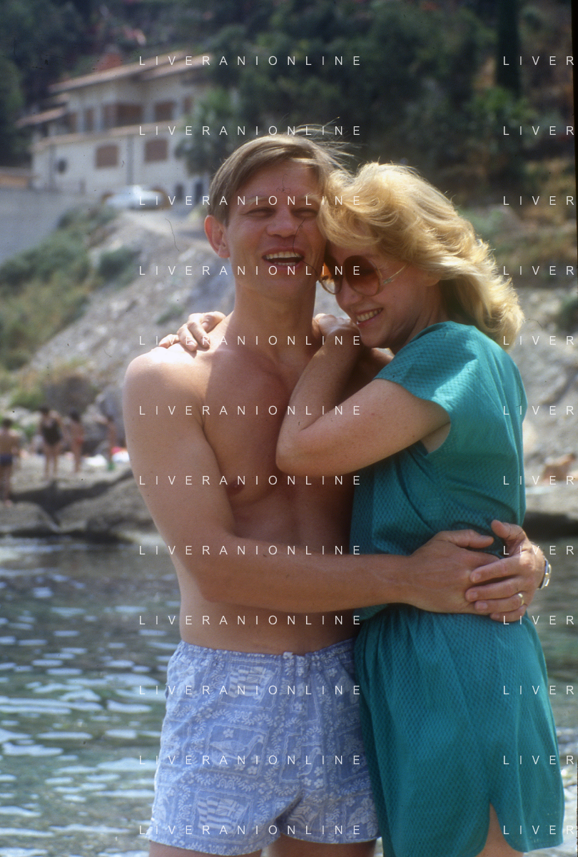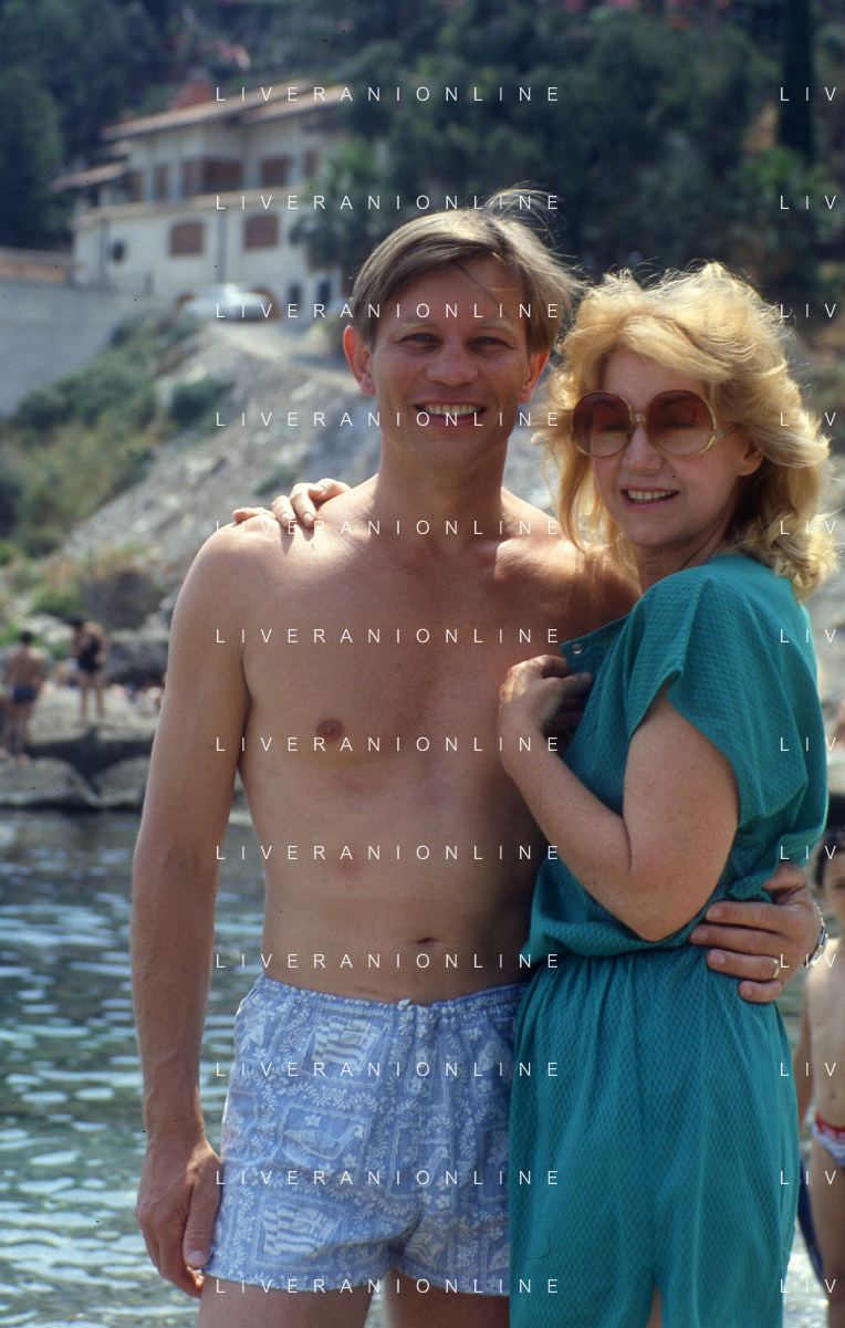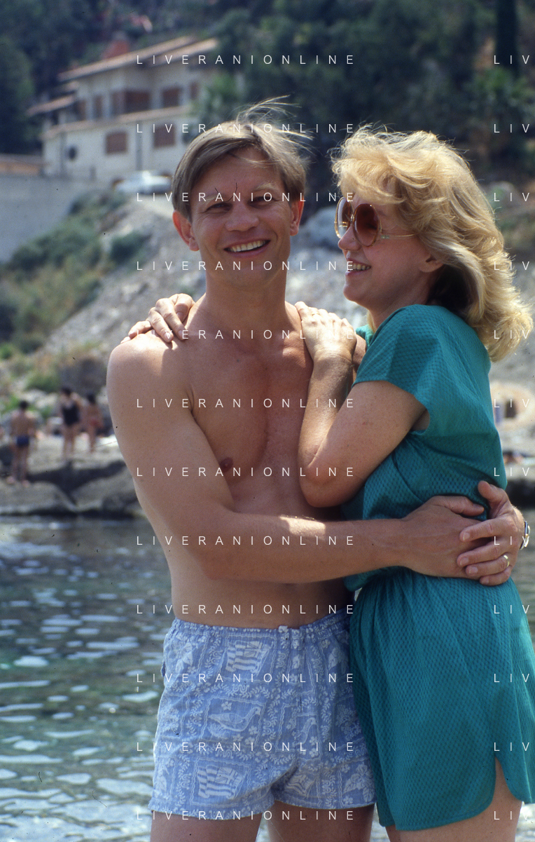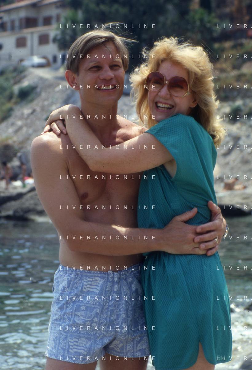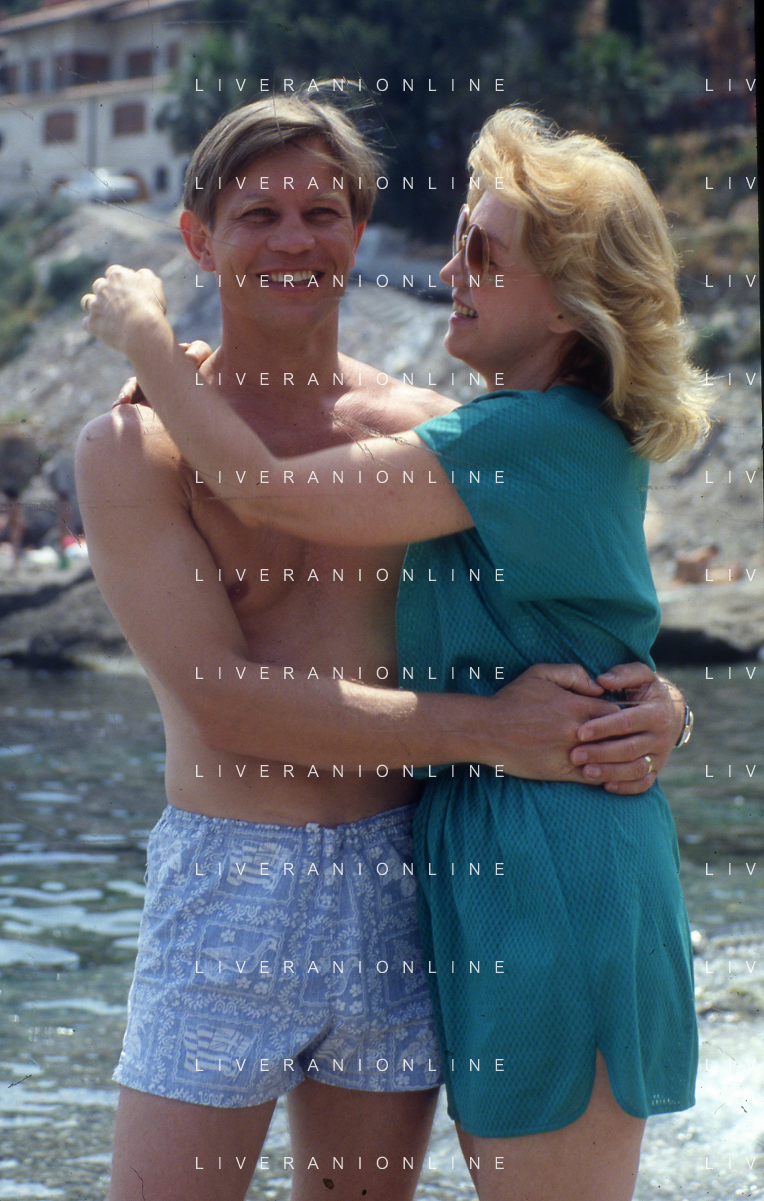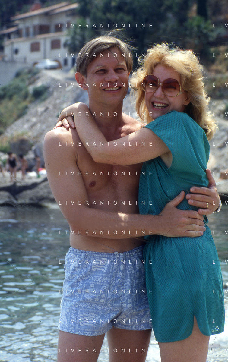 RETROSPETTIVA MICHAEL YORK ATTORE NELLA FOTO MICHAEL YORK E LA MOGLIE PATRICIA Mc CALLUM A TAORMINA NELL'ANNO 1975 AG ALDO LIVERANI SAS