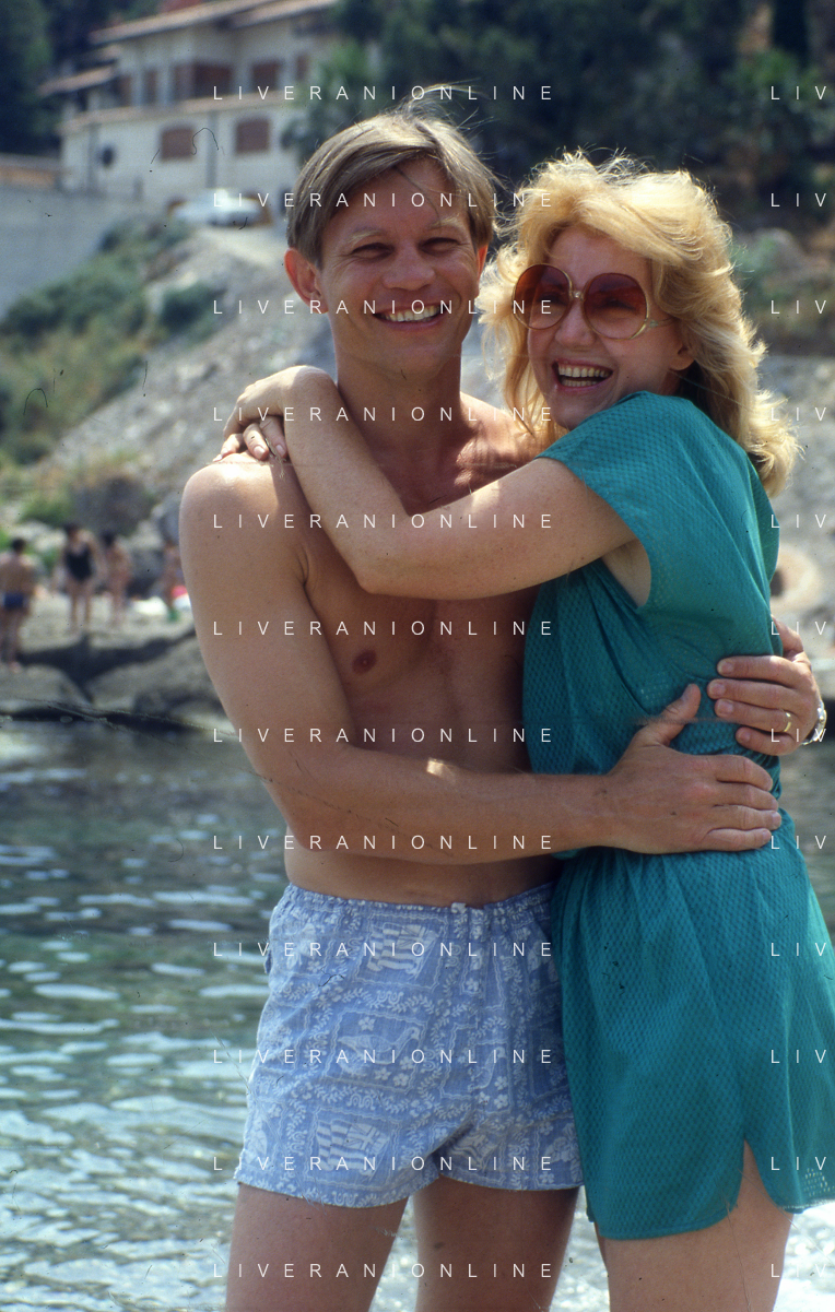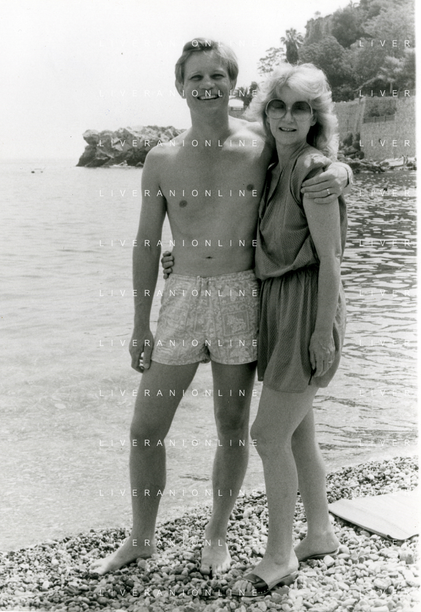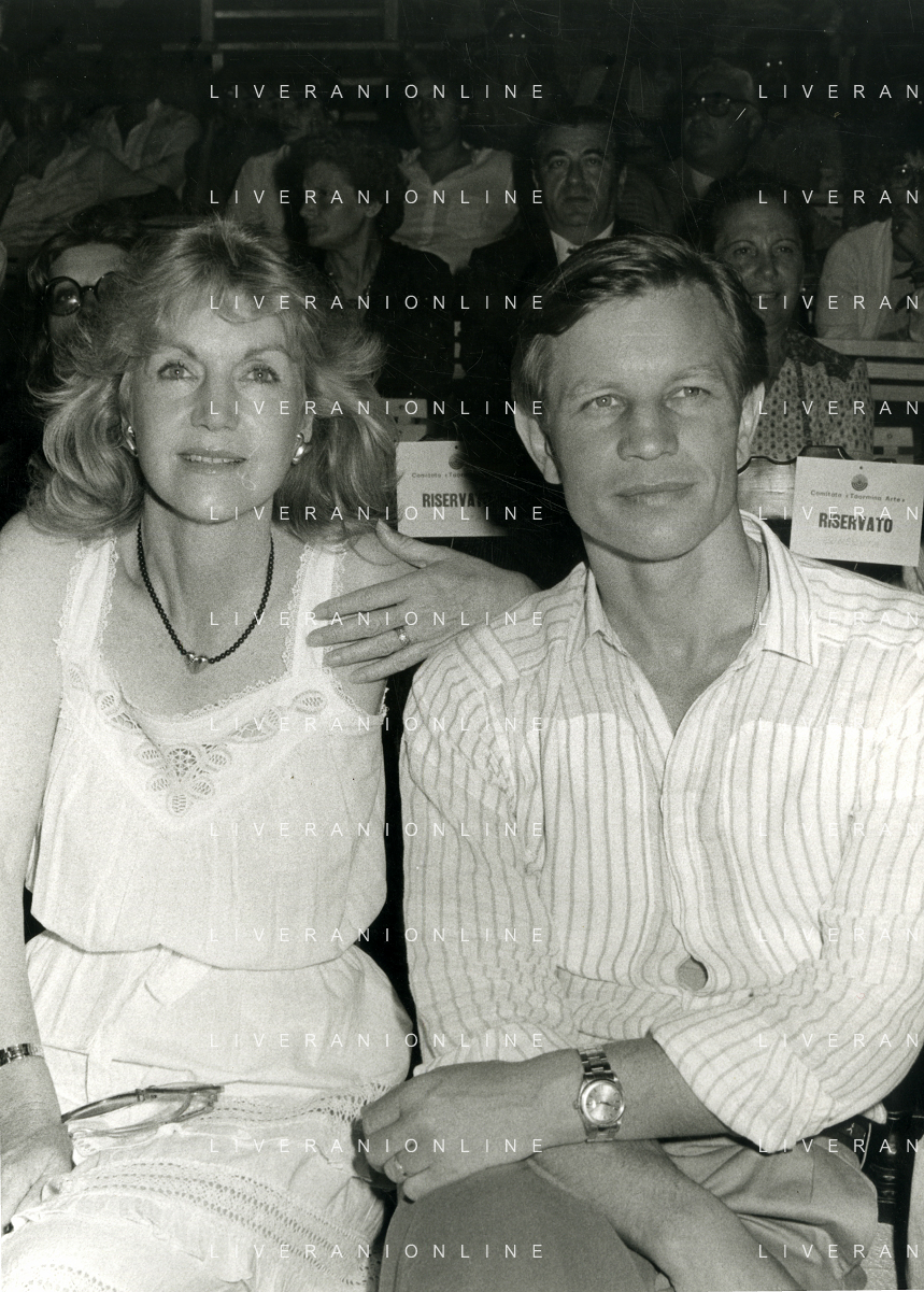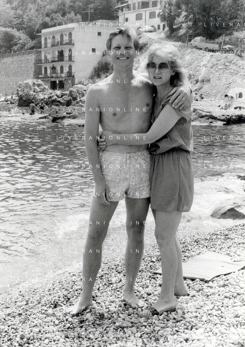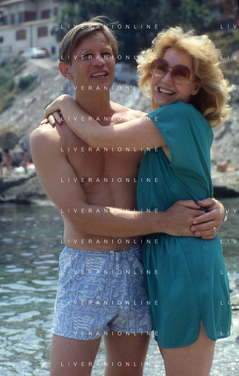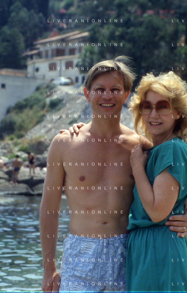 RETROSPETTIVA MICHAEL YORK ATTORE NELLA FOTO MICHAEL YORK E LA MOGLIE PATRICIA Mc CALLUM A TAORMINA NELL'ANNO 1975 AG ALDO LIVERANI SAS