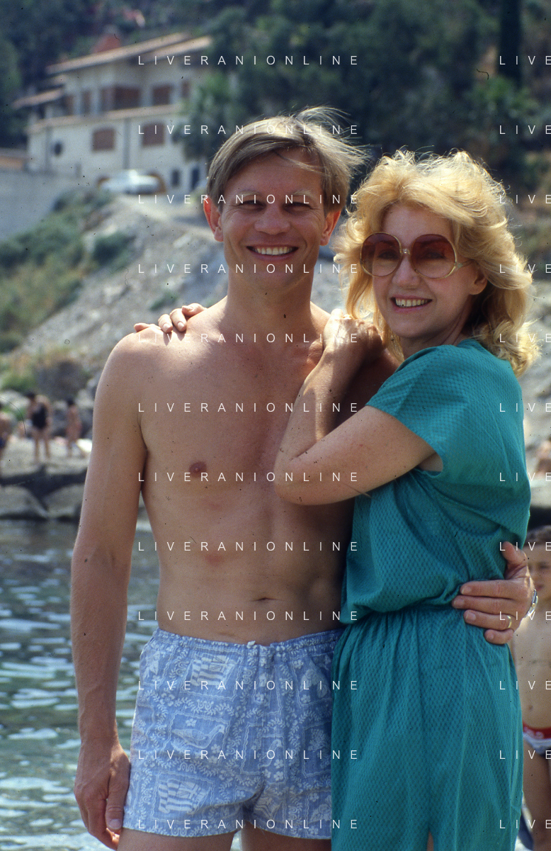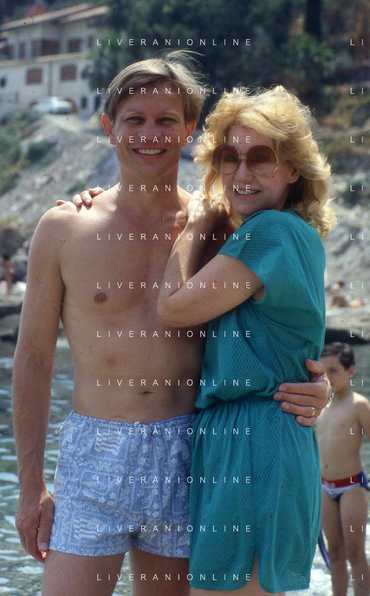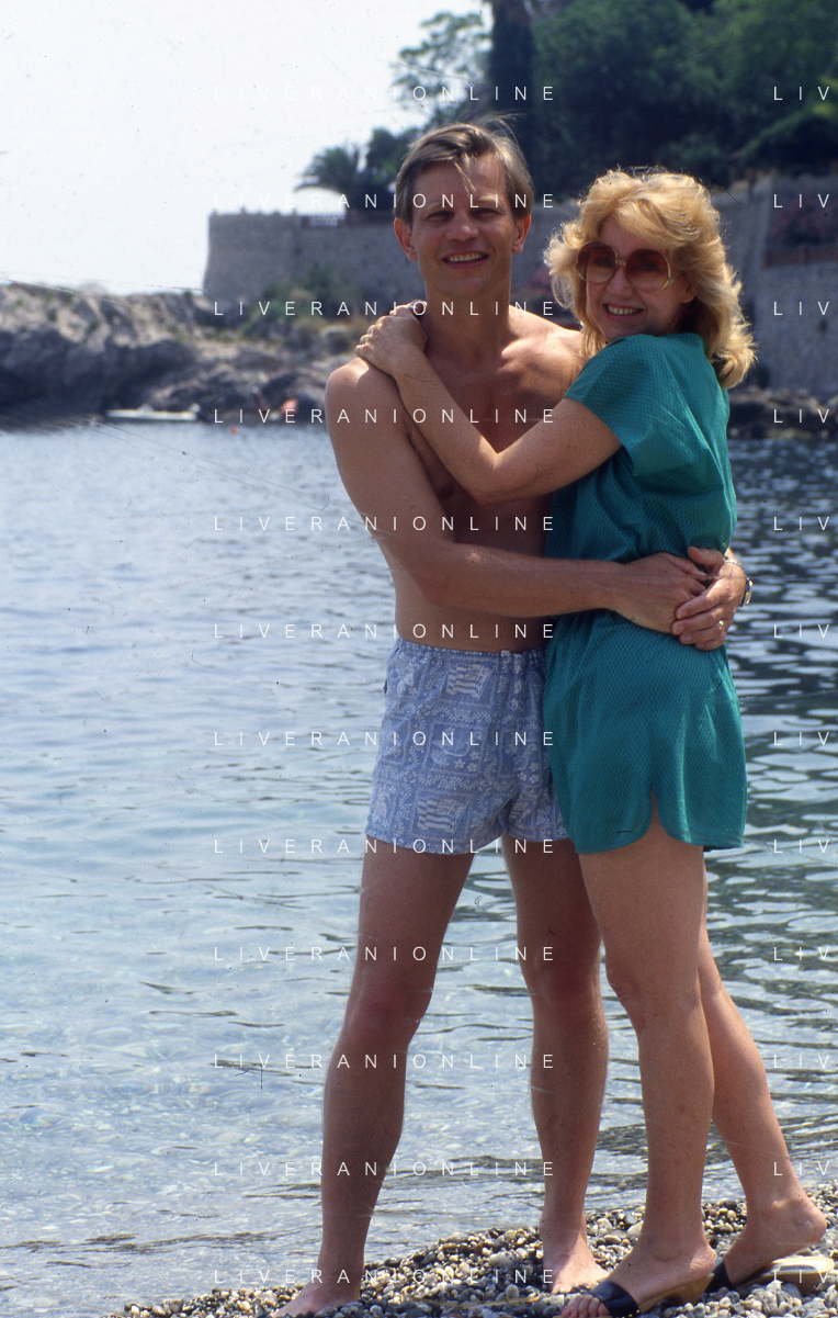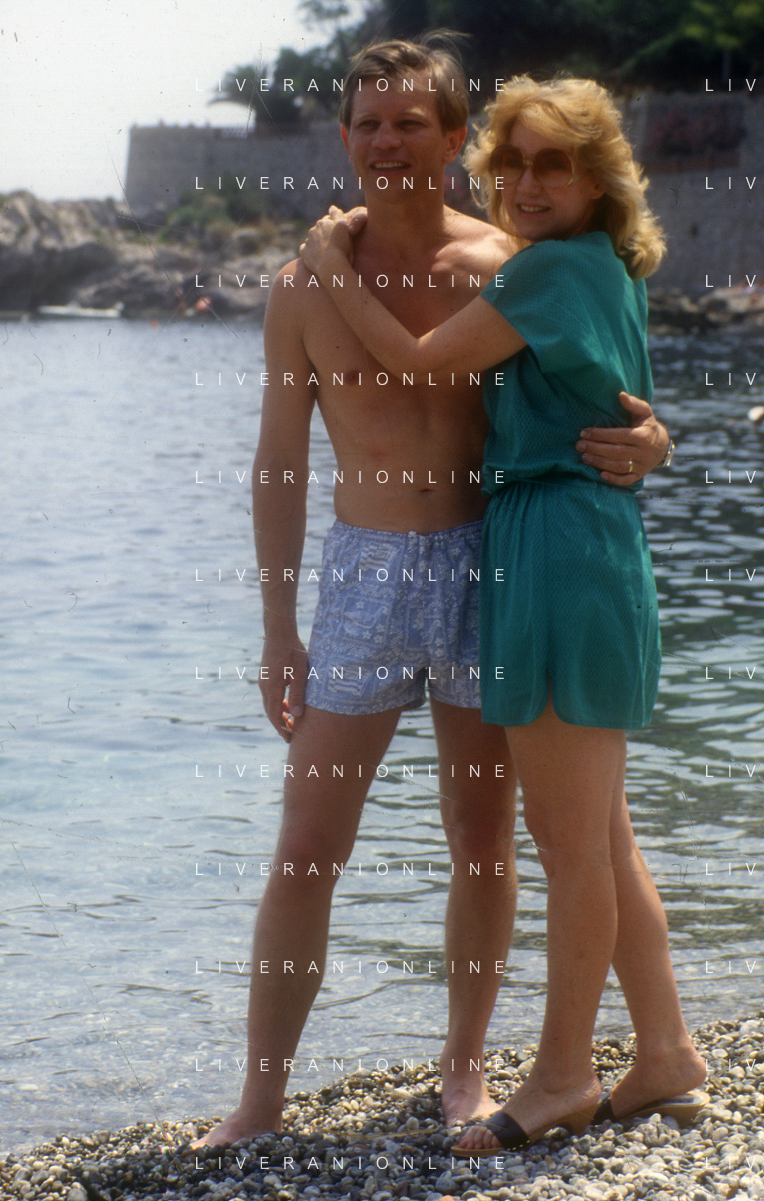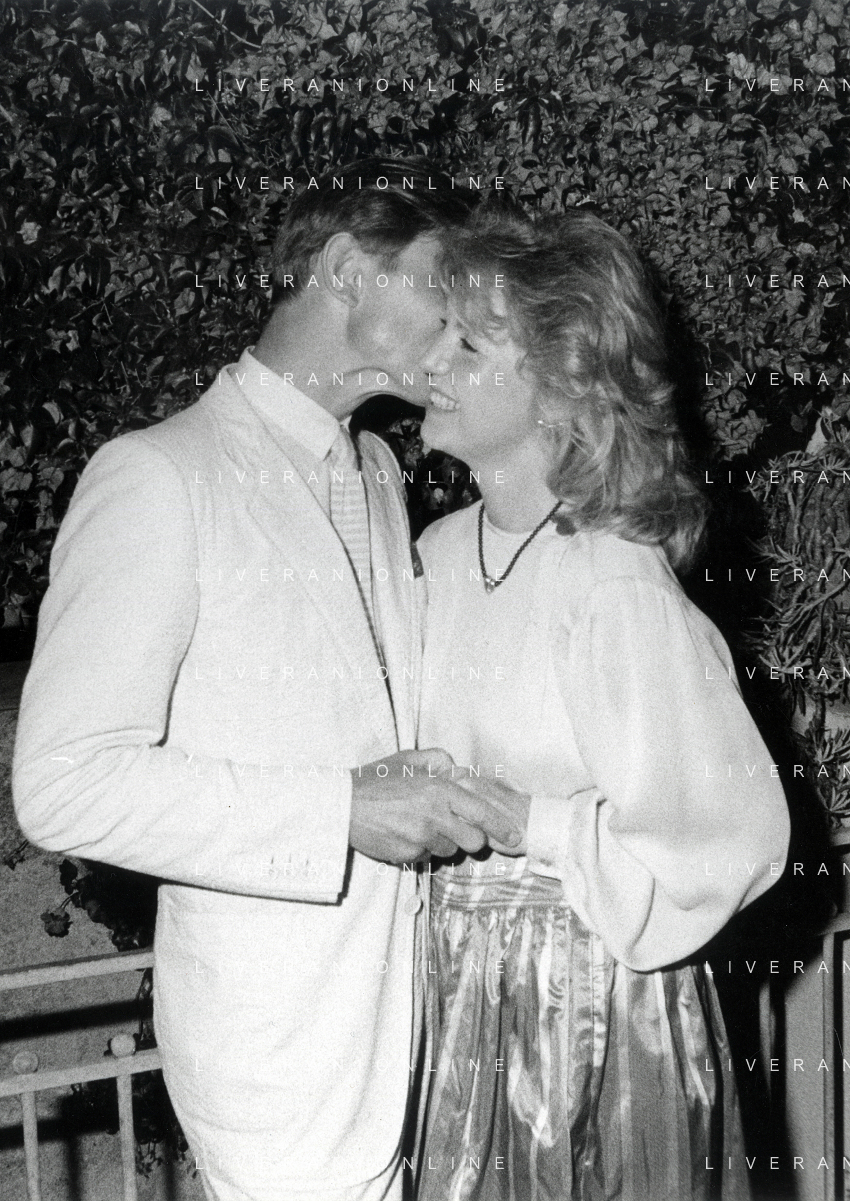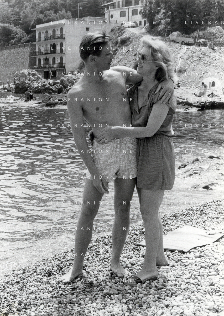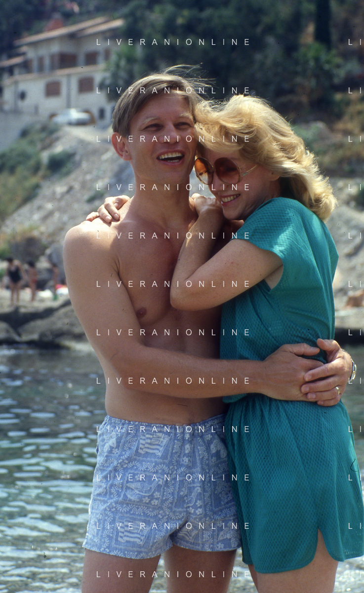 RETROSPETTIVA MICHAEL YORK ATTORE NELLA FOTO MICHAEL YORK E LA MOGLIE PATRICIA Mc CALLUM A TAORMINA NELL'ANNO 1975 AG ALDO LIVERANI SAS
