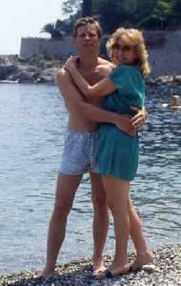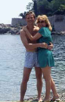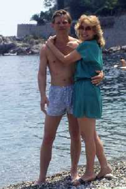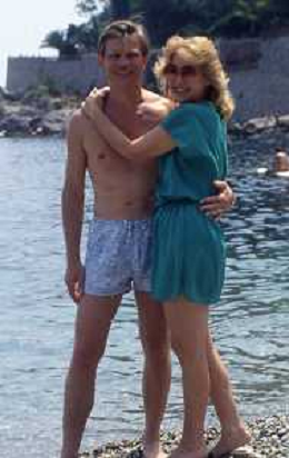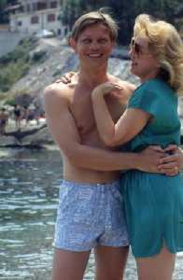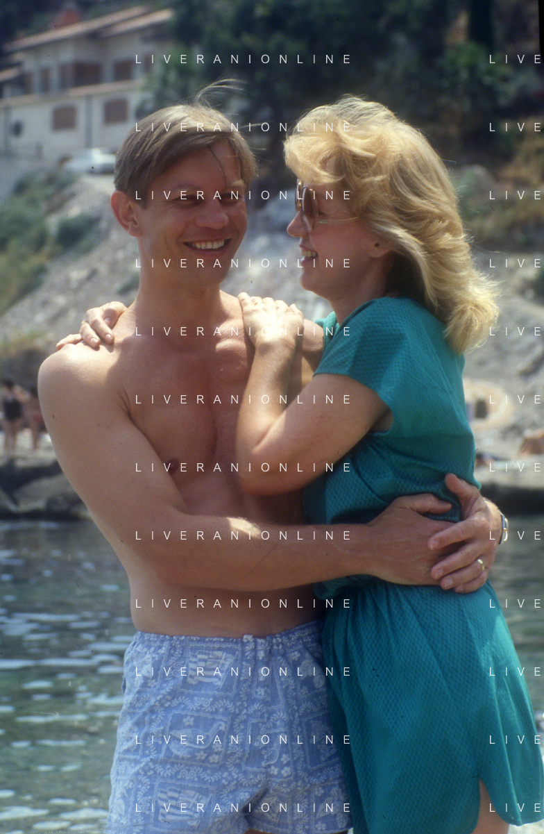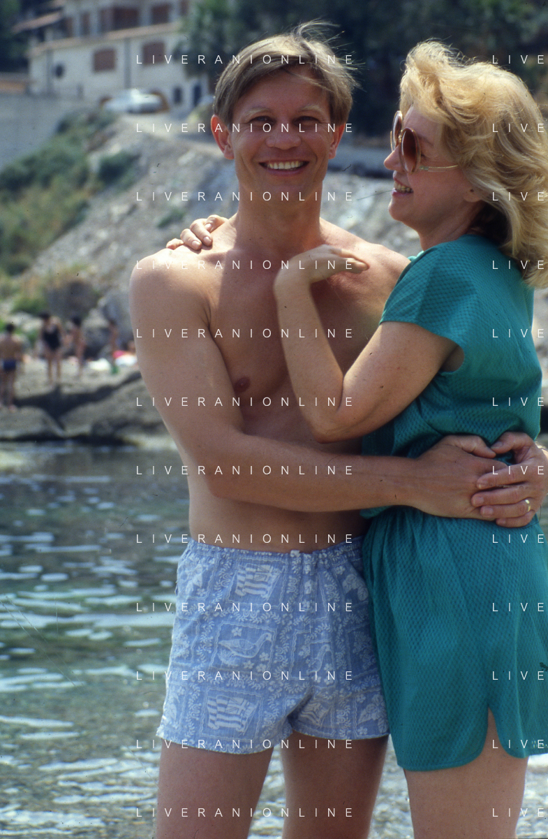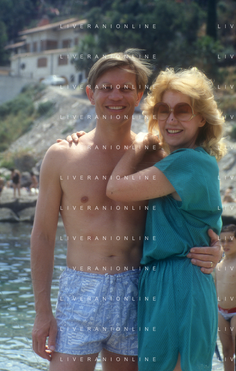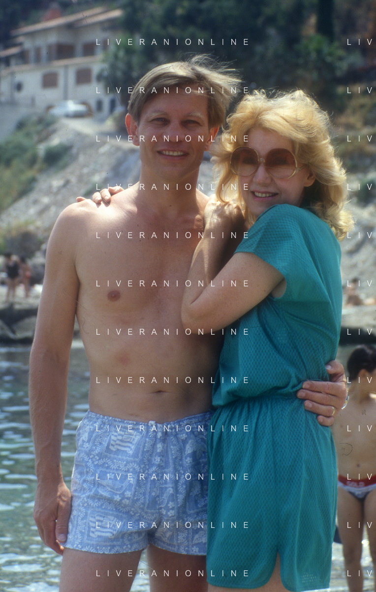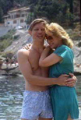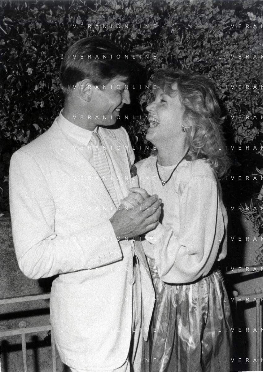 RETROSPETTIVA MICHAEL YORK ATTORE NELLA FOTO MICHAEL YORK E LA MOGLIE PATRICIA Mc CALLUM A TAORMINA NELL'ANNO 1975 AG ALDO LIVERANI SAS