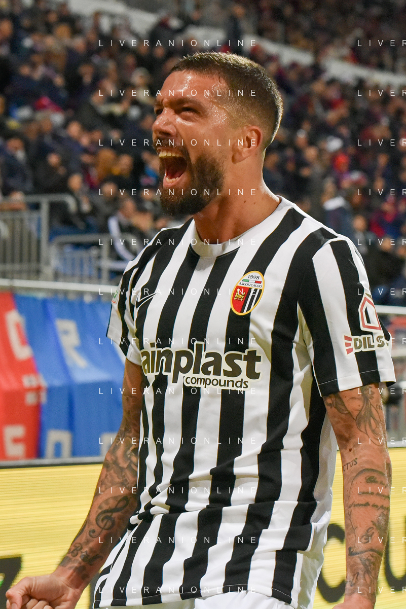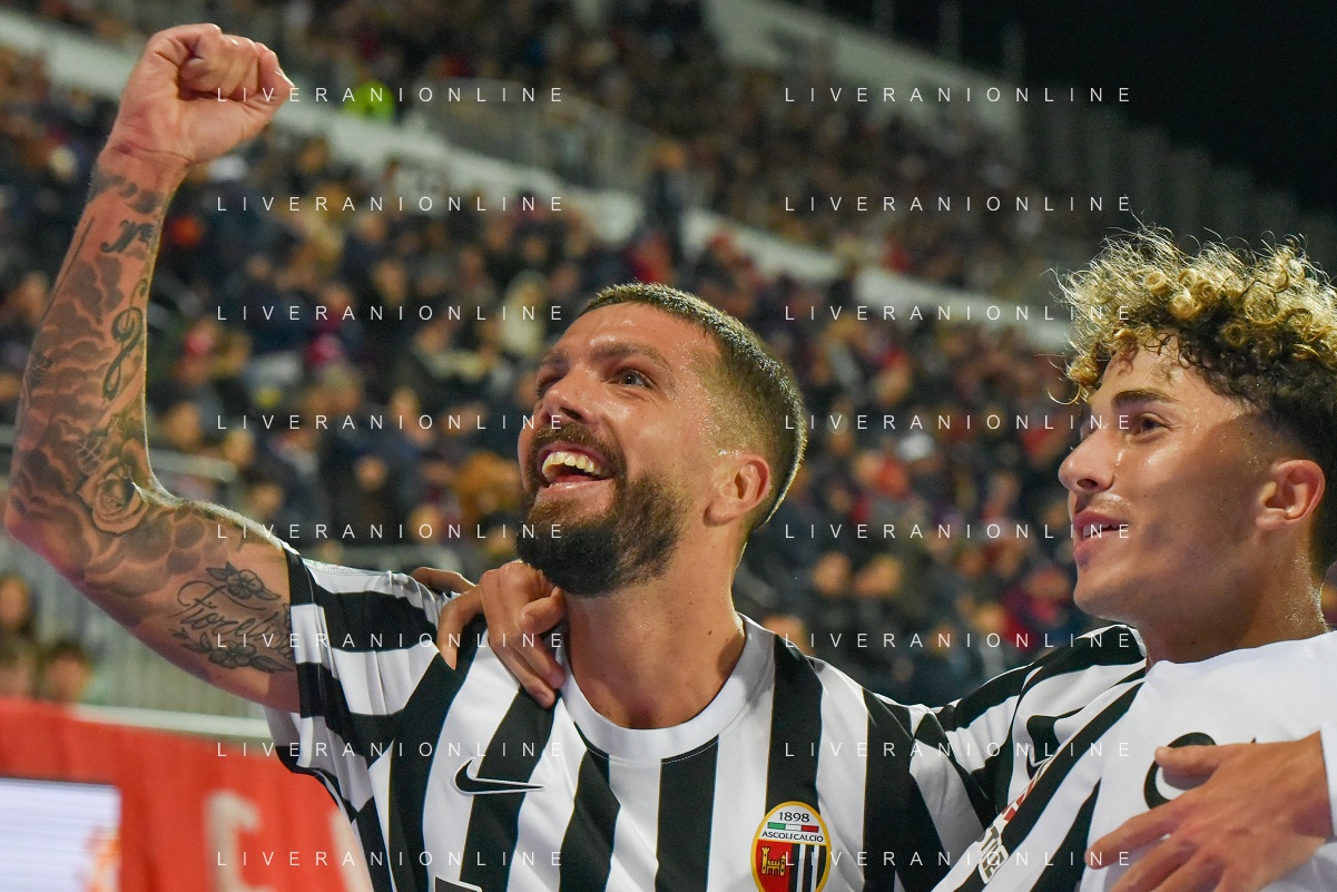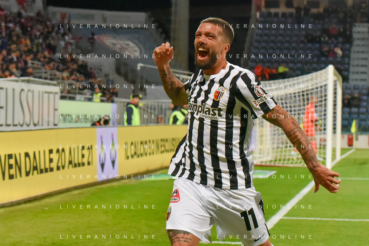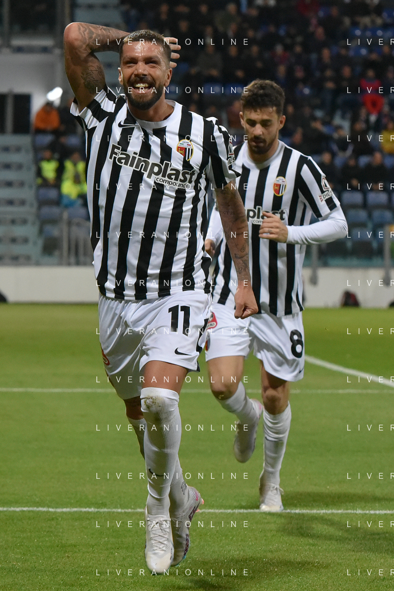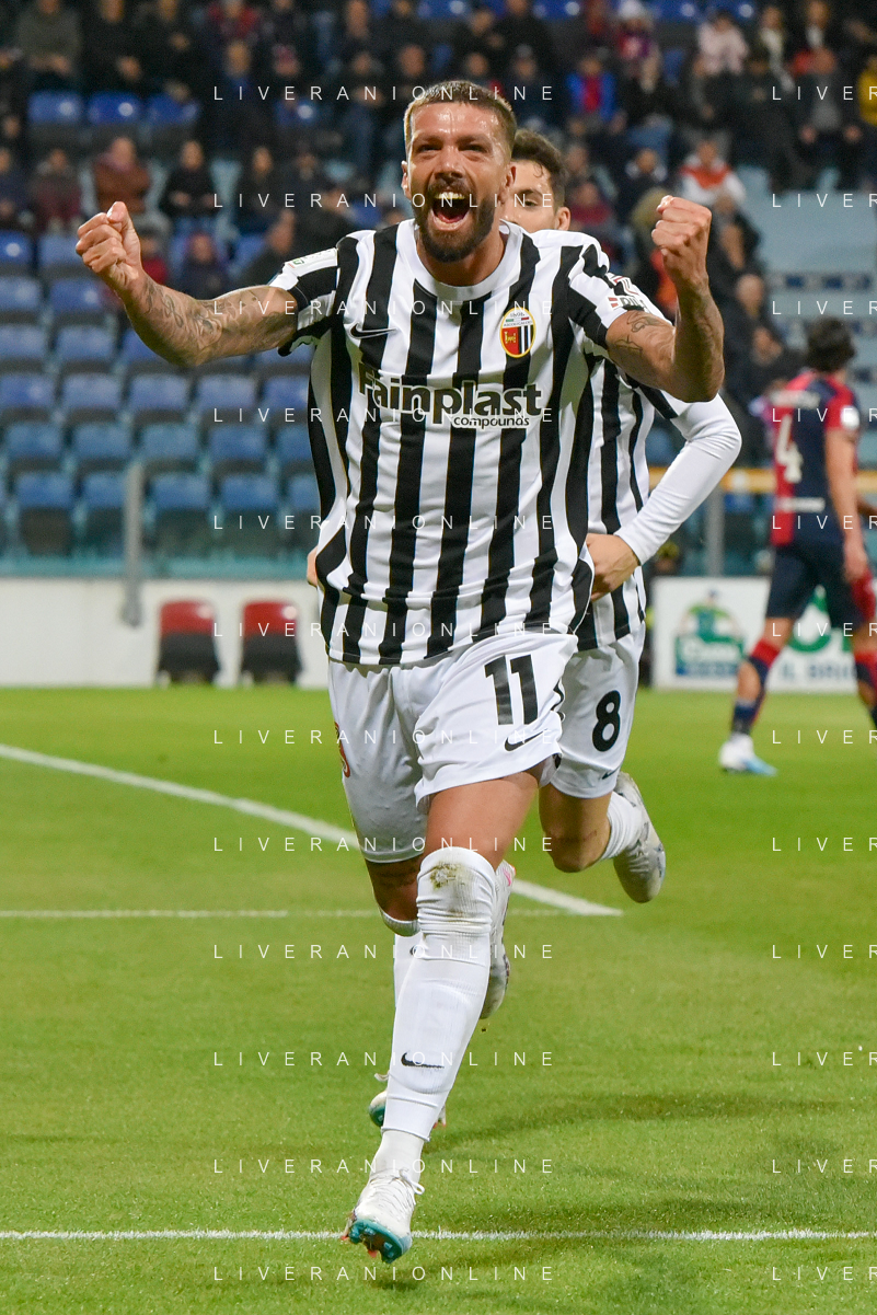 10-3-2023. Cagliari Calcio-Ascoli Calcio. 28° giornata serie BKT 2022/20233, stadio Unipol Domus Cagliari. Foto Salvatore Moi/Aldo Liverani s.a.s. Nella foto: Gol ed esultanta in trasferta, dell'Ascoli Calcioo contro il Cagliari Calcio, allo stadio Unipol Domuis di Cagliari. Segna:Francesco Forte Ascoli