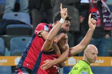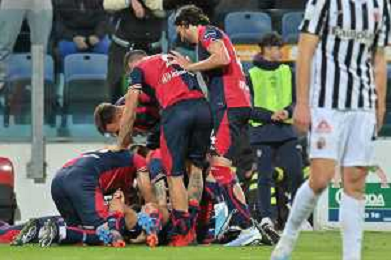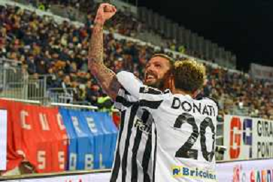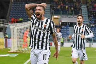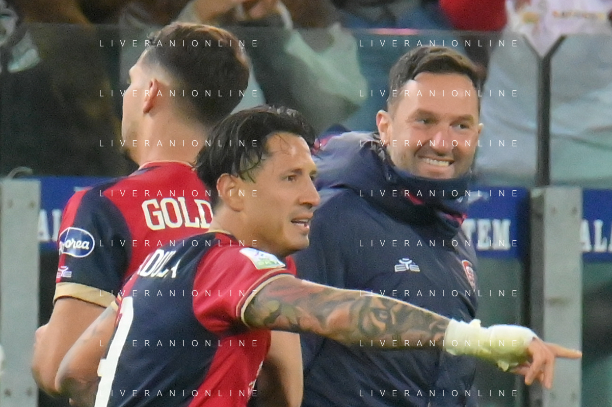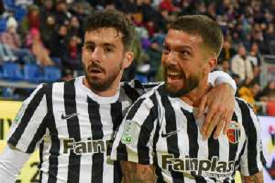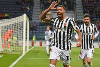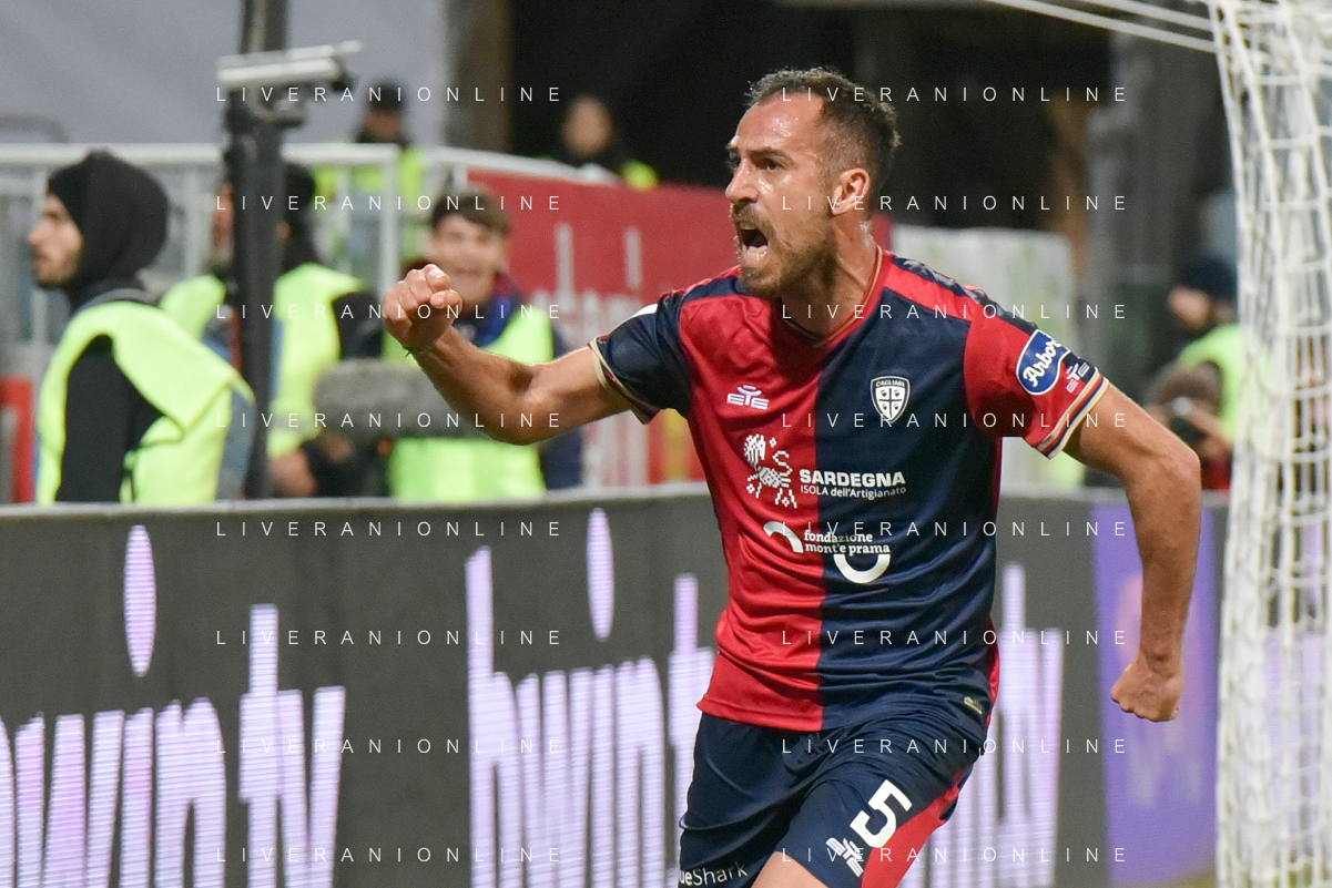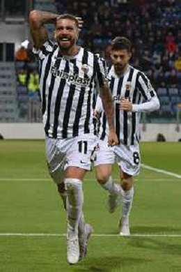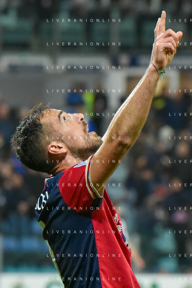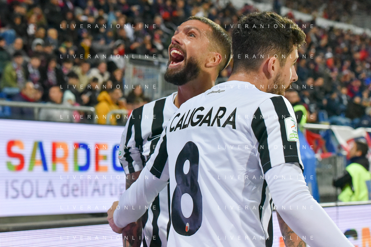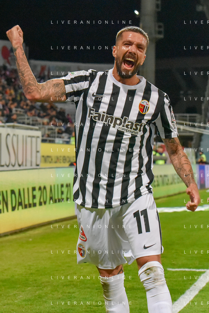 10-3-2023. Cagliari Calcio-Ascoli Calcio. 28° giornata serie BKT 2022/20233, stadio Unipol Domus Cagliari. Foto Salvatore Moi/Aldo Liverani s.a.s. Nella foto: Gol ed esultanta in trasferta, dell'Ascoli Calcioo contro il Cagliari Calcio, allo stadio Unipol Domuis di Cagliari. Segna:Francesco Forte Ascoli