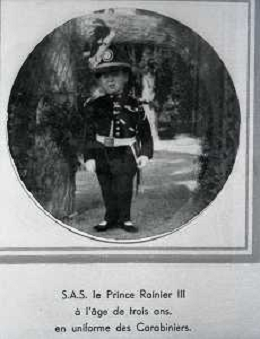 RETROSPETTIVA PRINCIPE RANIERI DI MONACO NELLA FOTO RANIERI DI MONACO A QUATTRO ANNI VESTITO DA CARABINIERE RIPRODUZIONE SANDRO VESPASIANI-AG ALDO LIVERANI SAS