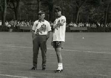 1994 MILANELLO ALLENAMENTO NAZIONALE ITALIANA DI CALCIO NELLA FOTO ARRIGO SACCHI CON NICOLA BERTI AG ALDO LIVERANI SAS