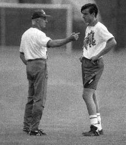 1994 MILANELLO ALLENAMENTO NAZIONALE ITALIANA DI CALCIO NELLA FOTO ARRIGO SACCHI CON ALESSANDRO COSTACURTAAG ALDO LIVERANI SAS