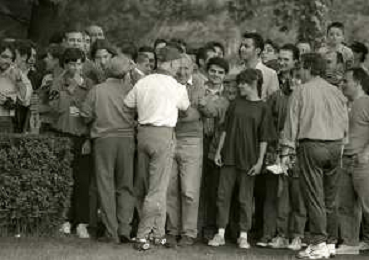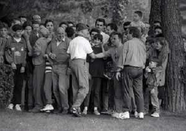1994 MILANELLO ALLENAMENTO NAZIONALE ITALIANA DI CALCIO NELLA FOTO ARRIGO SACCHI CON I TIFOSI AG ALDO LIVERANI SAS