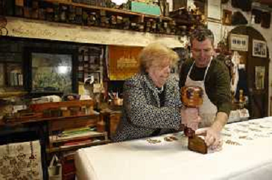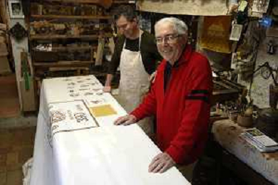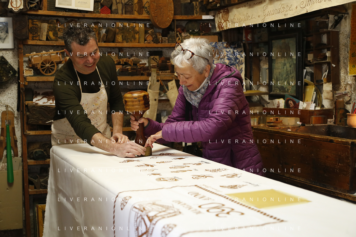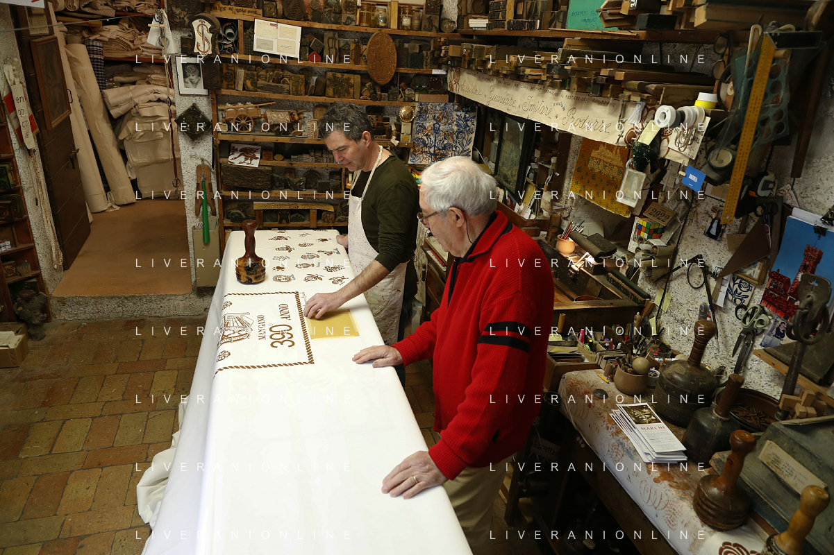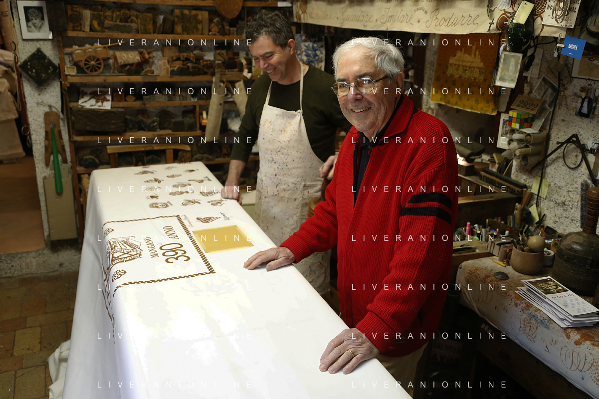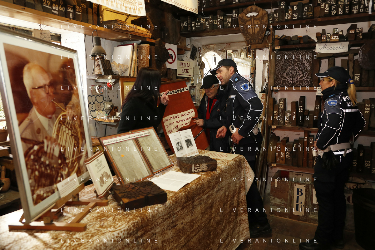 Consegnata la targa delle botteghe storiche dell'Emilia Romagna alla Stamperia Marchi, il Mangano ruota in legno del 1633 utilizzato per la stampa a mano, Santarcangelo di Romagna 17/03/2023 - 39 file