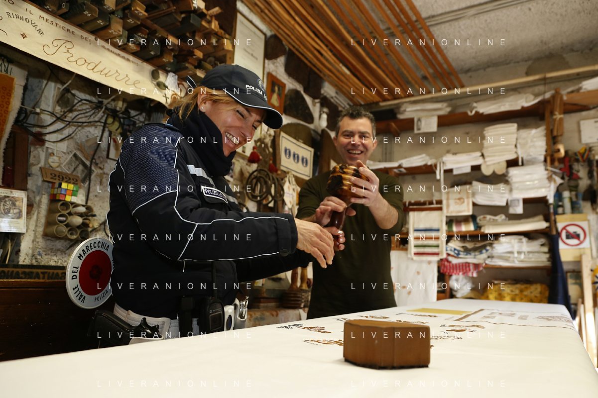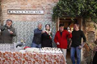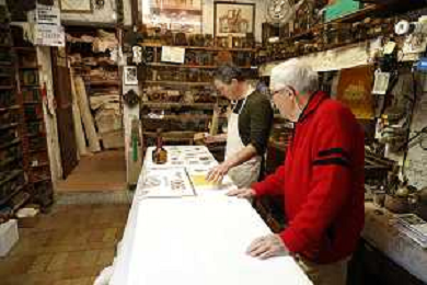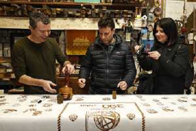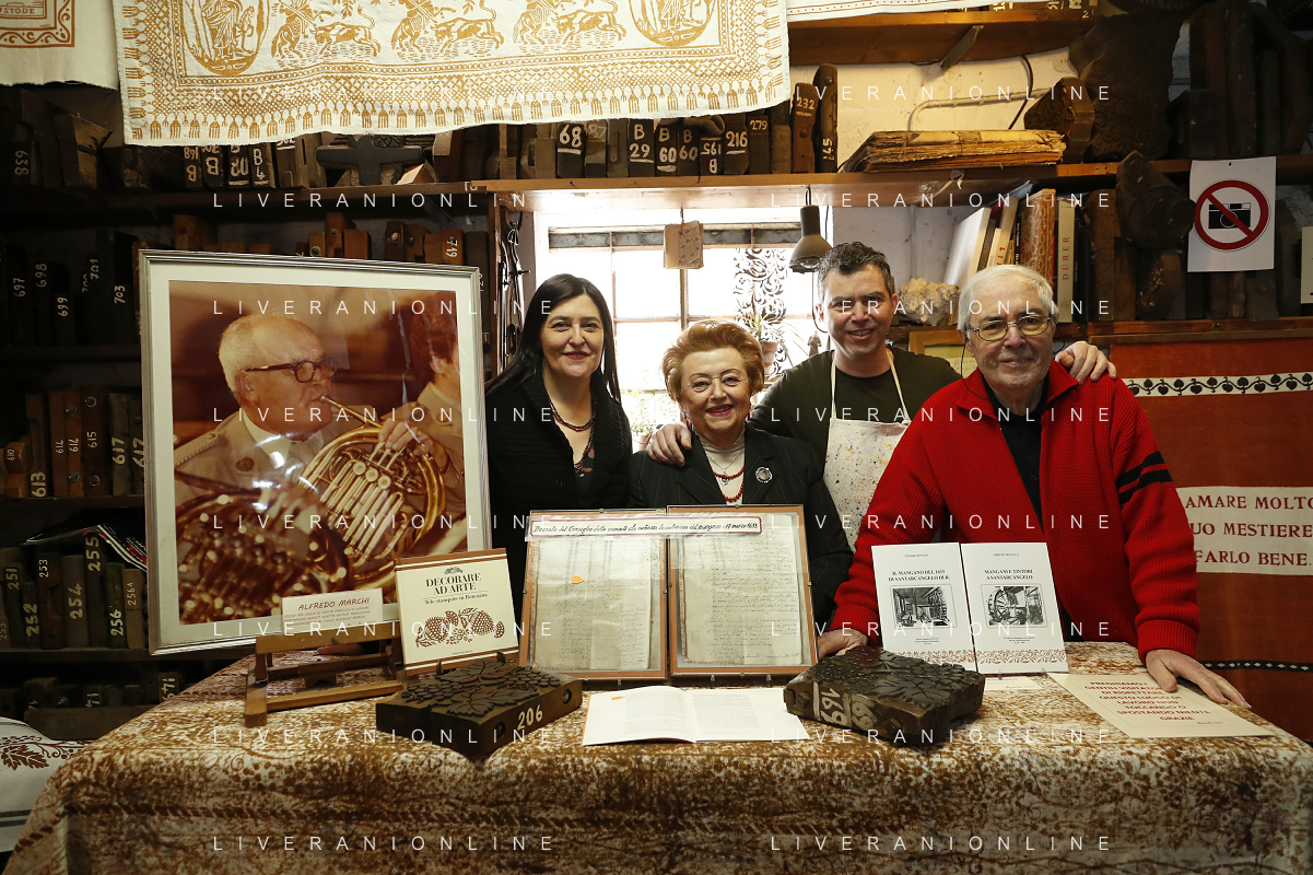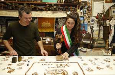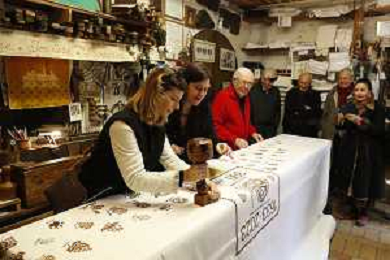 -ZCP-Consegnata la targa delle botteghe storiche dell'Emilia Romagna alla Stamperia Marchi, il Mangano ruota in legno del 1633 utilizzato per la stampa a mano, Santarcangelo di Romagna 17/03/2023