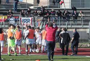 18-03-2023 MONTEVARCHI CALCIO SERIE C AQUILA MONTEVARCHI - IMOLESE CALCIO NELLA FOTO I GIOCATORI DELL'IMOLESE CALCIO A FINE PARTITA SALUTANO FESTOSI I TIFOSI DELL'IMOLESE FOTO GIANNI SANNA-AG ALDO LIVERANI SAS