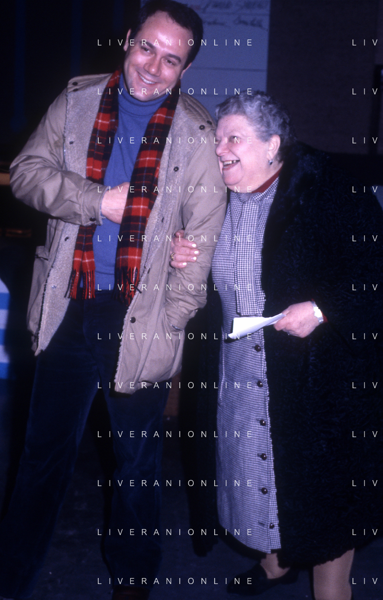 RETROSPETTIVA CARLO VERDONE ATTORE NELLA FOTO CARLO VERDONE A ROMA NELL'ANNO 1981 CON Elena Fabbrizi, nota anche con lo pseudonimo di Sora Lella AG ALDO LIVERANI SAS
