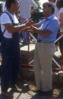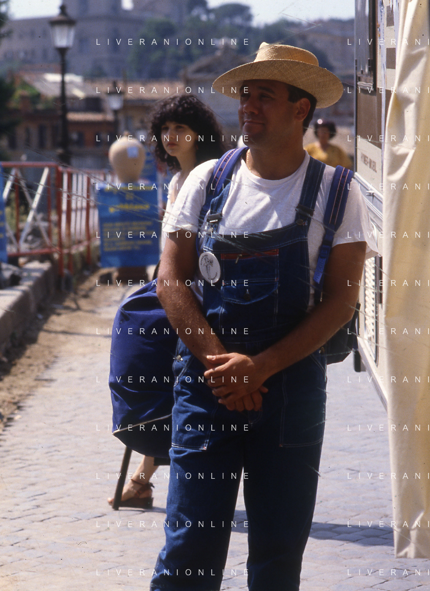 RETROSPETTIVA CARLO VERDONE ATTORE NELLA FOTO CARLO VERDONE A ROMA NELL'ANNO 1982 SUL SET DEL FILM“ IN VIAGGIO CON PAPA'“ CON ALBERTO SORDI AG ALDO LIVERANI SAS