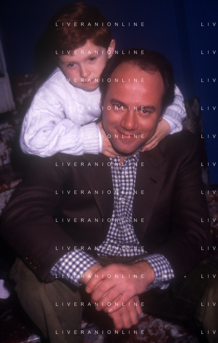 RETROSPETTIVA CARLO VERDONE ATTORE NELLA FOTO CARLO VERDONE E FEDERICO RIZZO NELL'ANNO 1989 A MILANO TERRAZZA MARTINI ALLA PRESENTAZIONE DEL FILM“IL BAMBINO E IL POLIZIOTTO“ AG ALDO LIVERANI SAS