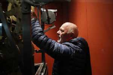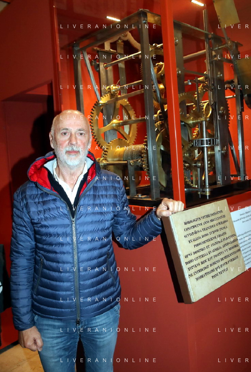 IMOLA 23 03 2023 TORNA A FUNZIONARE MECCANISMO DELL'OROLOGIO DELLA TORRE COMUNALE NELLA FOTO OROLOGIAIO FIORENTINO ANDREA PALMIERI FOTO GIANNI SANNA-AG ALDO LIVERANI SAS