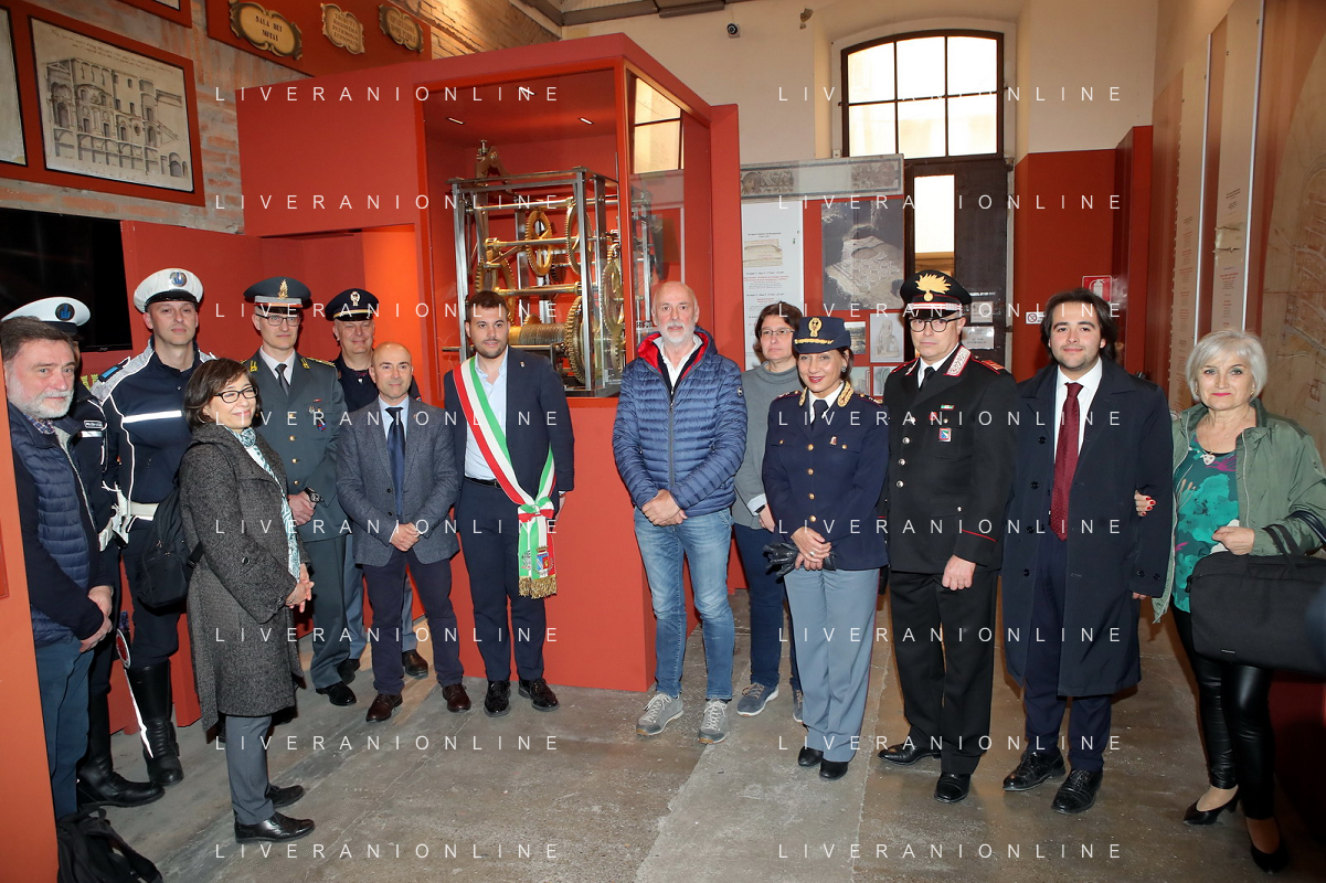IMOLA 23 03 2023 TORNA A FUNZIONARE MECCANISMO DELL'OROLOGIO DELLA TORRE COMUNALE NELLA FOTO OROLOGIAIO ANDREA PALMIERI SINDACO MARCO PANIERI VERONICA GALASSI E ORIANA ORSI DEL SERVIZIO MUSEI E ATTIVITA' ESPOSITIVE FORZE DELL'ORDINE NICHOLAS VACCHI MIRELLA PAGLIARDINI E FRNACO CAMAGGI FOTO GIANNI SANNA-AG ALDO LIVERANI SAS