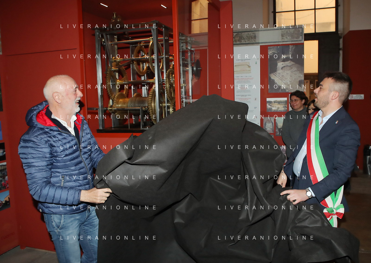 IMOLA 23 03 2023 TORNA A FUNZIONARE MECCANISMO DELL'OROLOGIO DELLA TORRE COMUNALE NELLA FOTO OROLOGIAIO ANDREA PALMIERI E SINDACO MARCO PANIERI FOTO GIANNI SANNA-AG ALDO LIVERANI SAS
