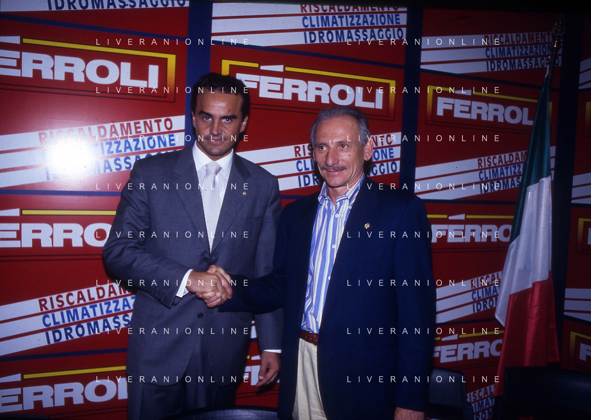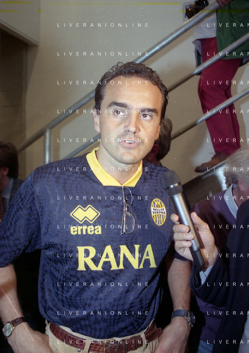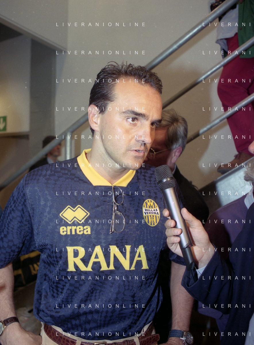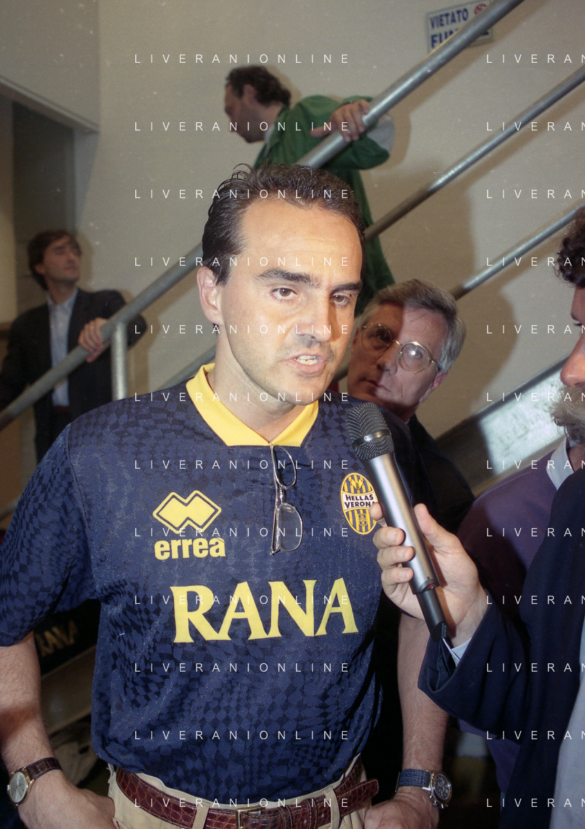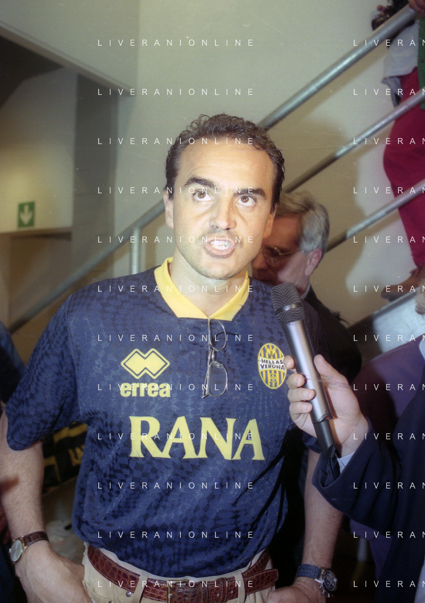 RETROSPETTIVA ALBERTO MAZZI PRESIDENTE VERONA CALCIO NELLA FOTO ALBERTO MAZZI ALLO STADIO BENTEGODI DI VERONA NELL'ANNO 1996 CON STEFANO GARILLI PRESIDENTE PIACENZA CALCIO AG ALDO LIVERANI SAS
