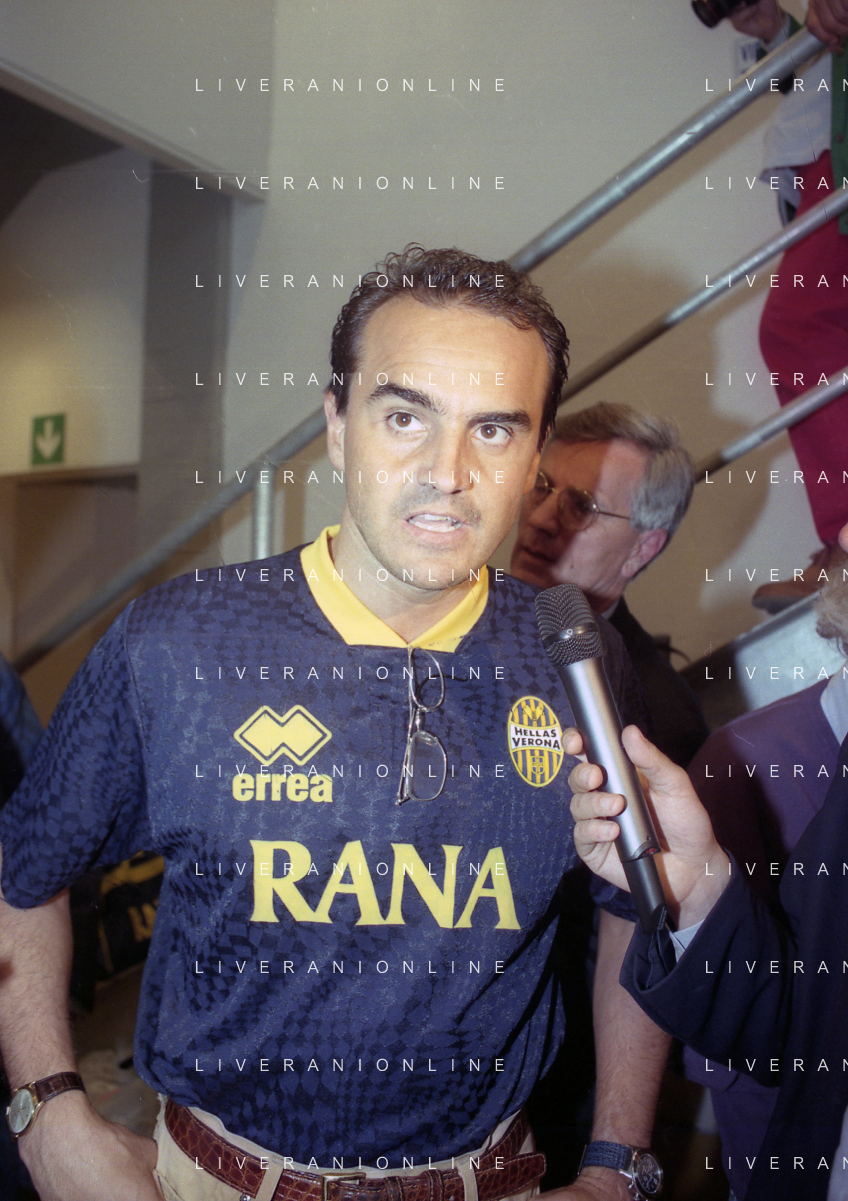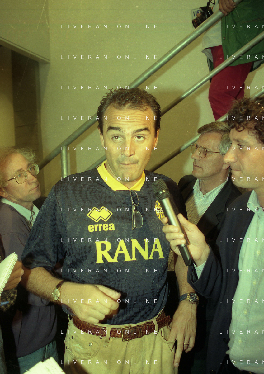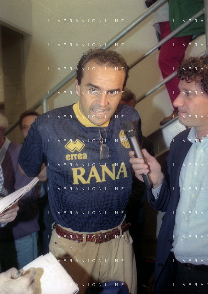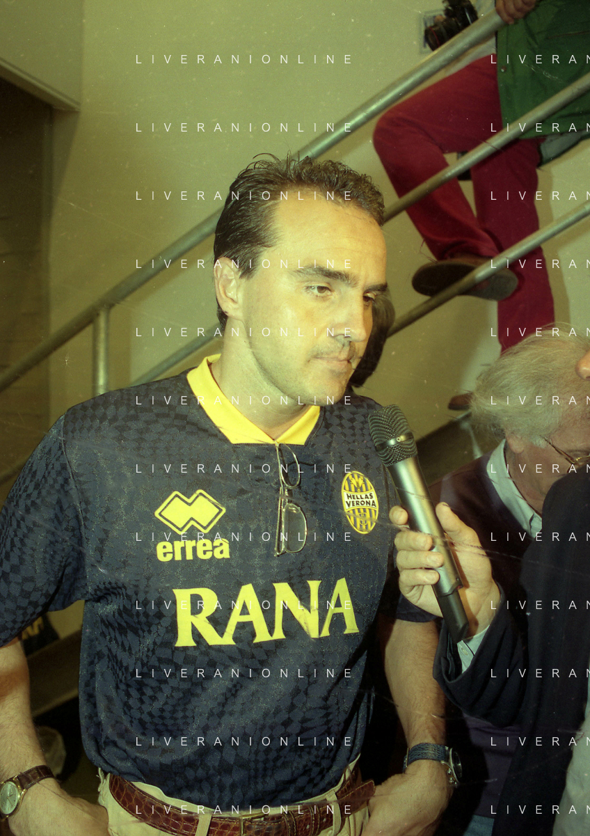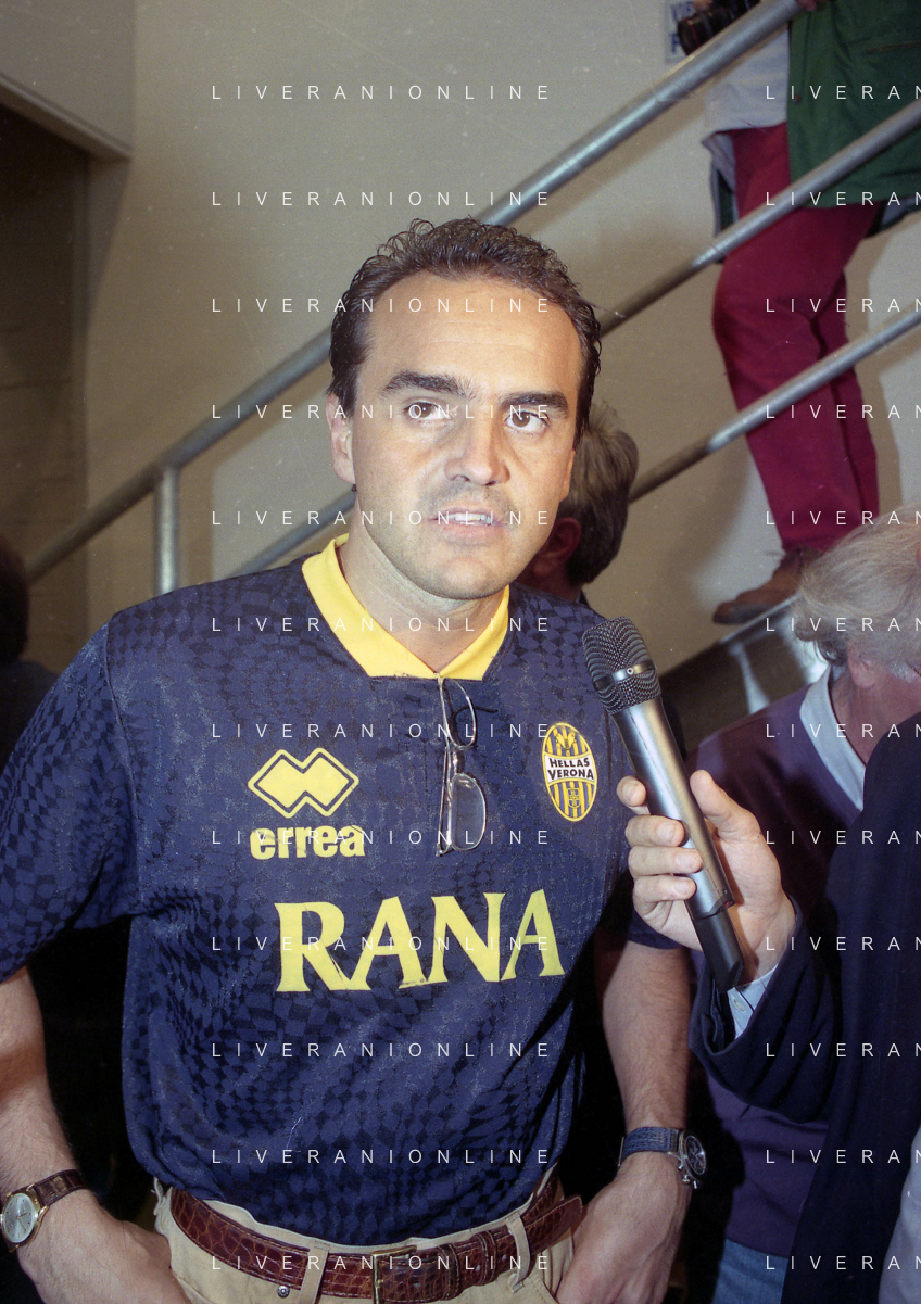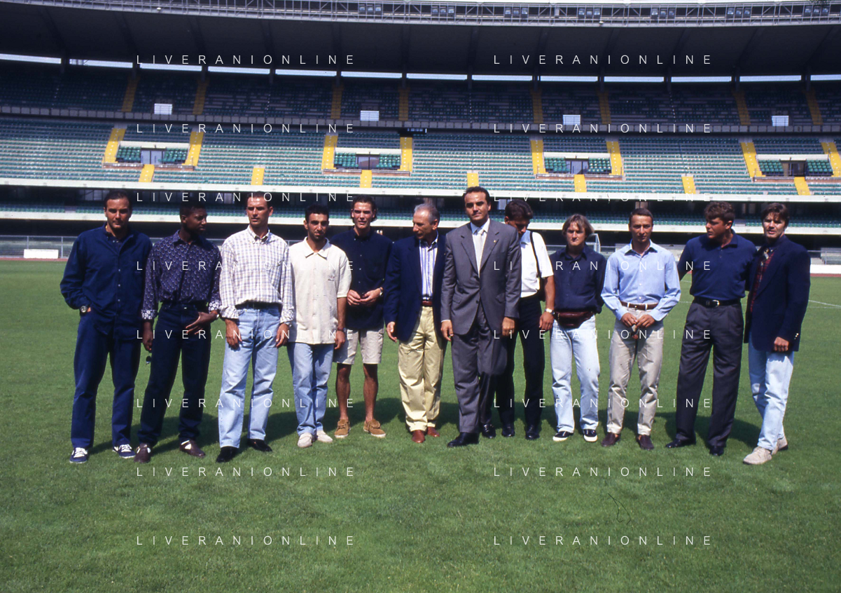 RETROSPETTIVA ALBERTO MAZZI PRESIDENTE VERONA CALCIO NELLA FOTO ALBERTO MAZZI ALLO STADIO BENTEGODI DI VERONA NELL'ANNO 1996 CON STEFANO GARILLI PRESIDENTE PIACENZA CALCIO AG ALDO LIVERANI SAS