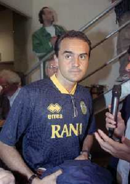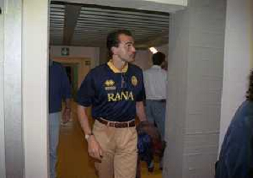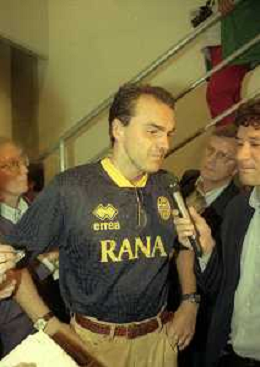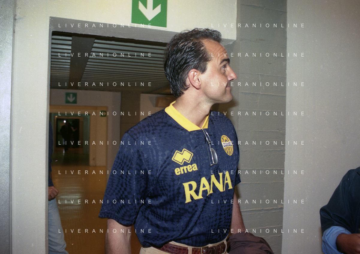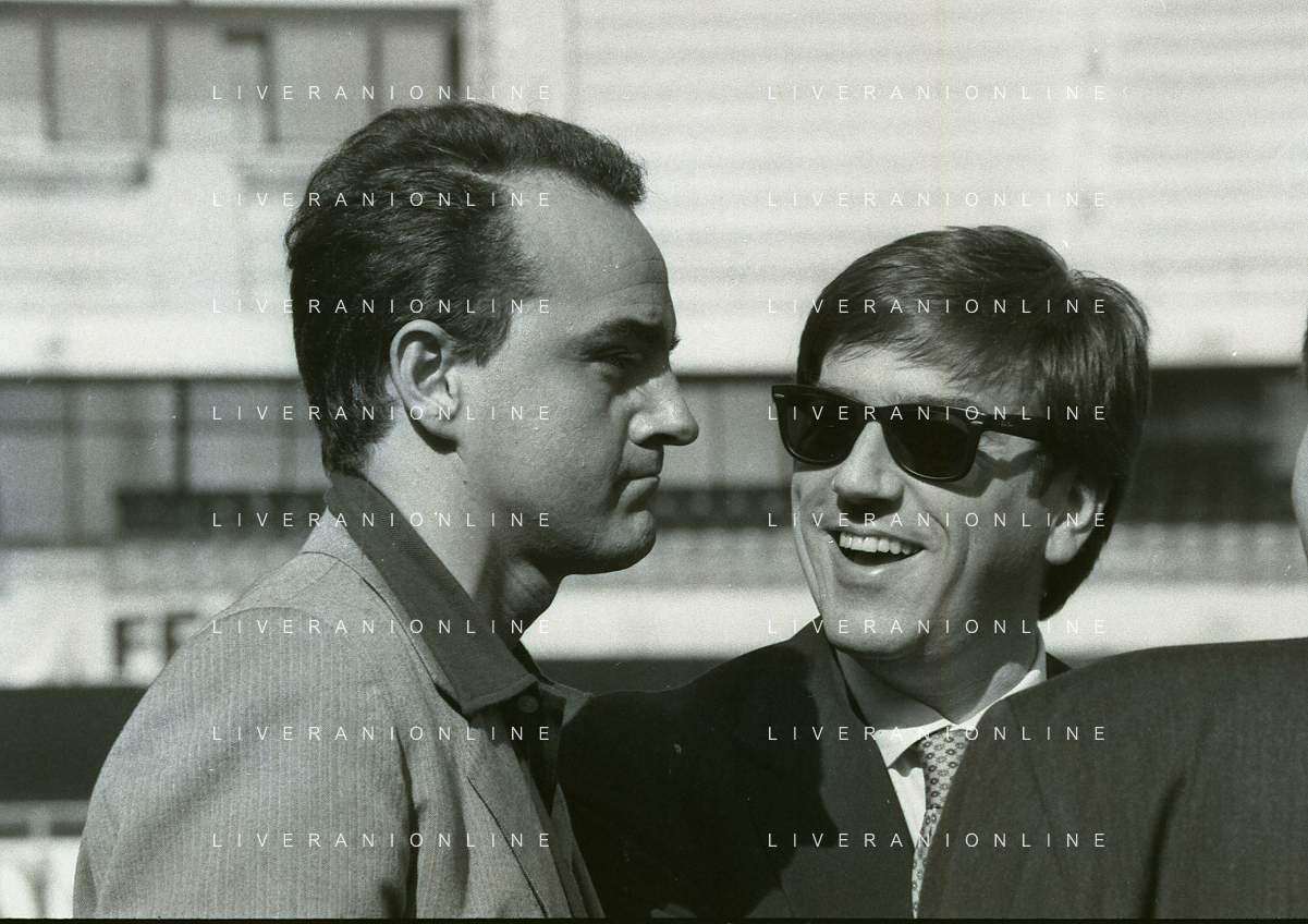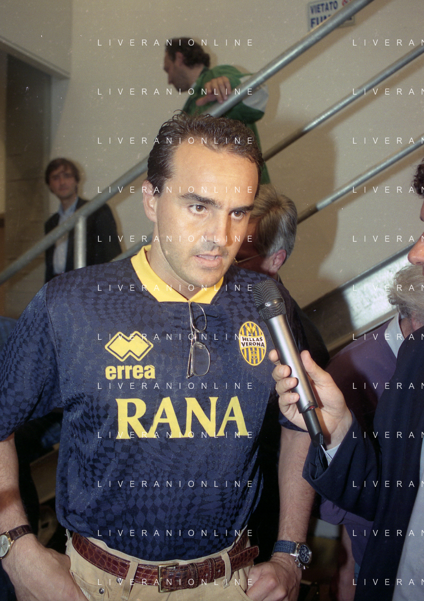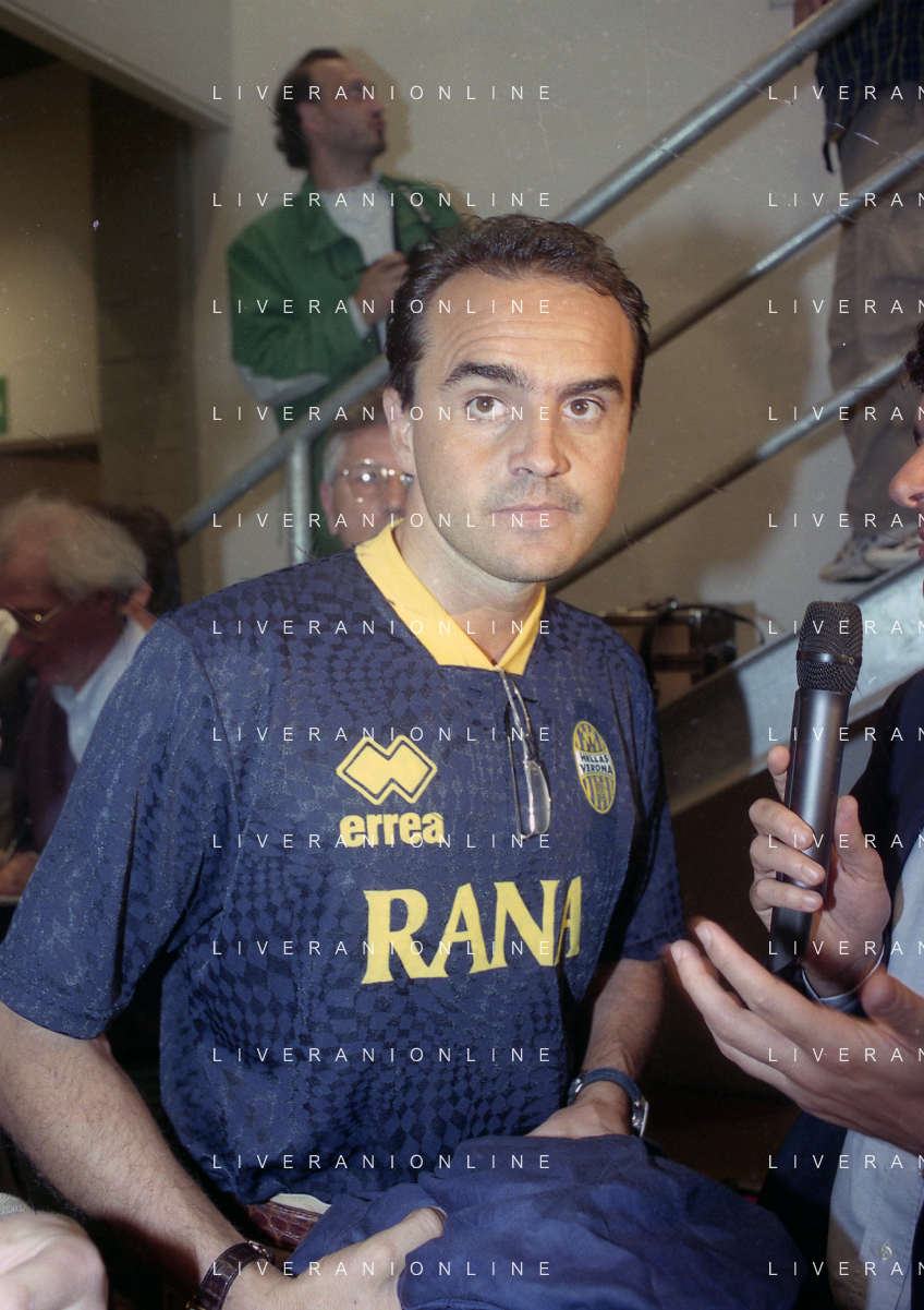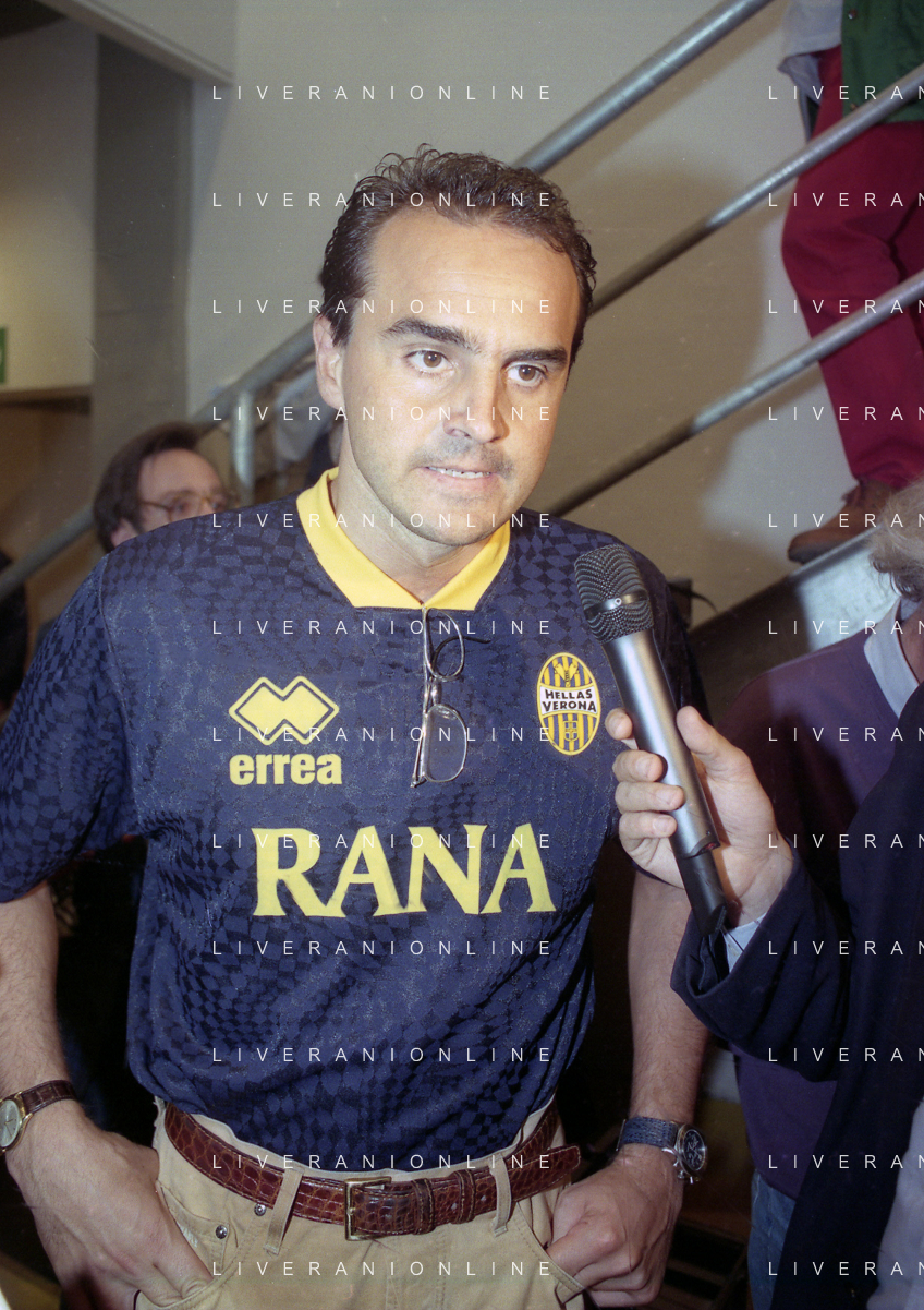 RETROSPETTIVA ALBERTO MAZZI PRESIDENTE VERONA CALCIO NELLA FOTO ALBERTO MAZZI ALLO STADIO BENTEGODI DI VERONA NELL'ANNO 1996 CON STEFANO GARILLI PRESIDENTE PIACENZA CALCIO AG ALDO LIVERANI SAS