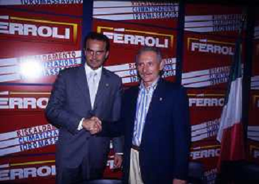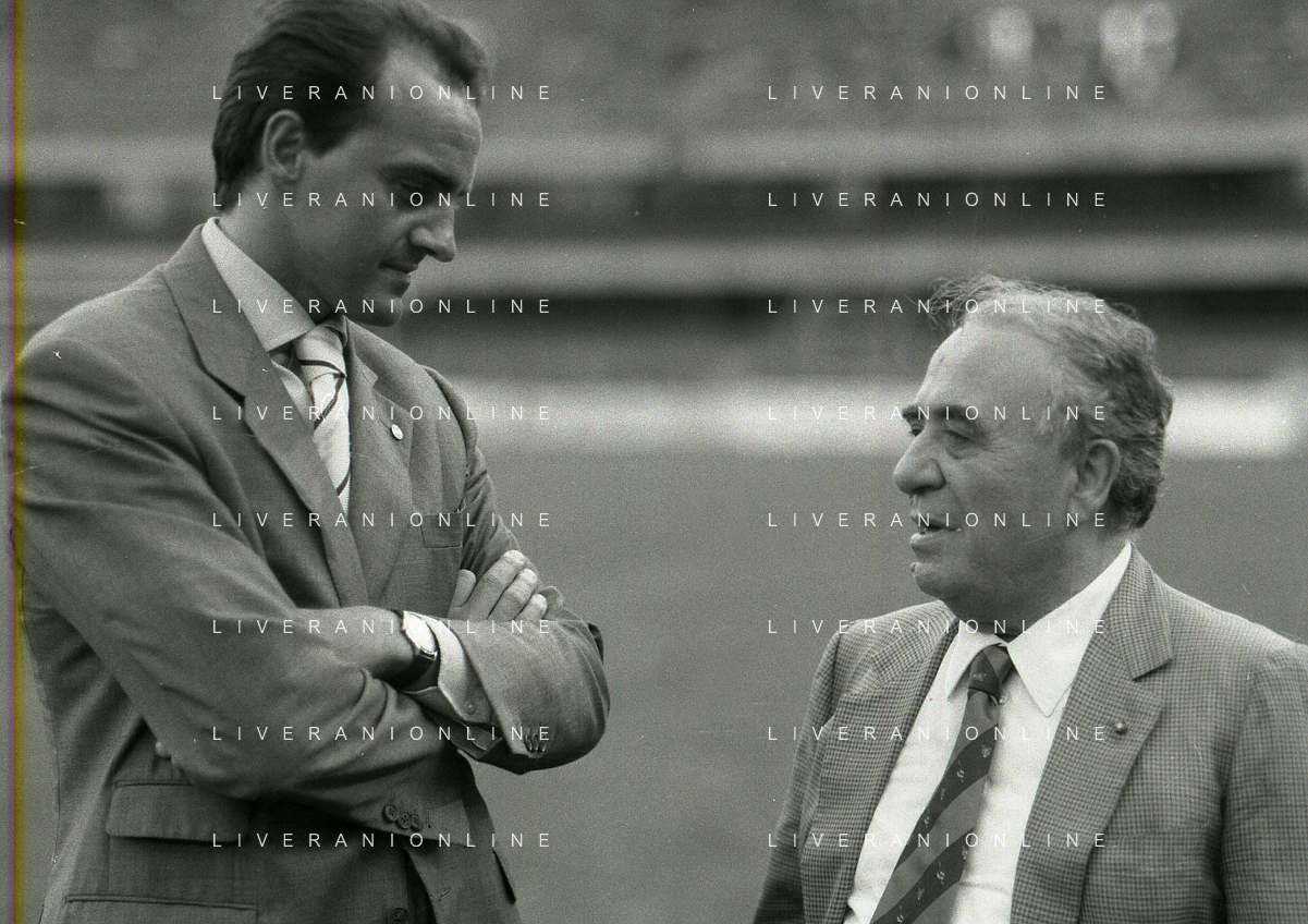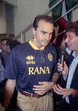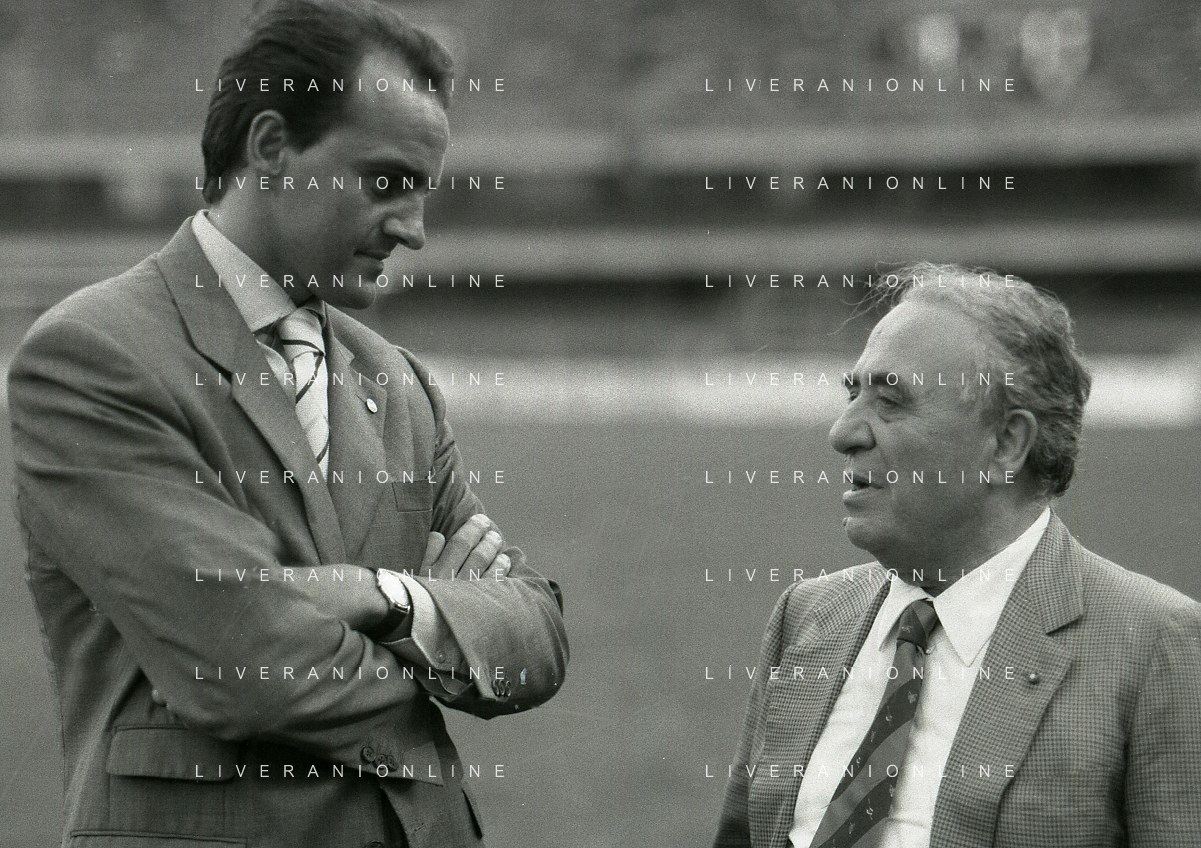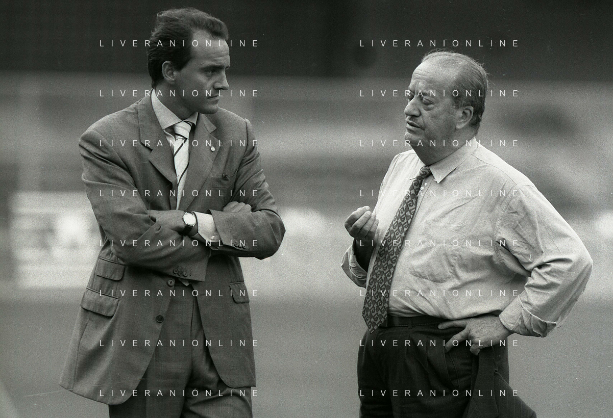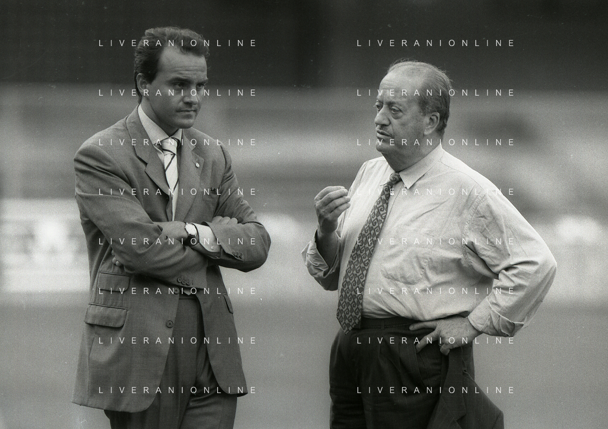 RETROSPETTIVA ALBERTO MAZZI PRESIDENTE VERONA CALCIO NELLA FOTO ALBERTO MAZZI ALLO STADIO BENTEGODI DI VERONA NELL'ANNO 1996 CON FRANCO SENSI PRESIDENTE ROMA CALCIO AG ALDO LIVERANI SAS
