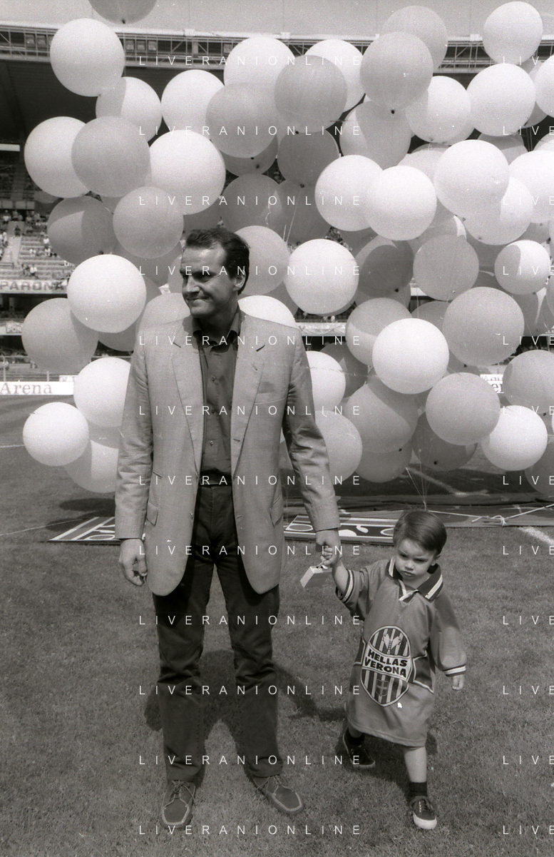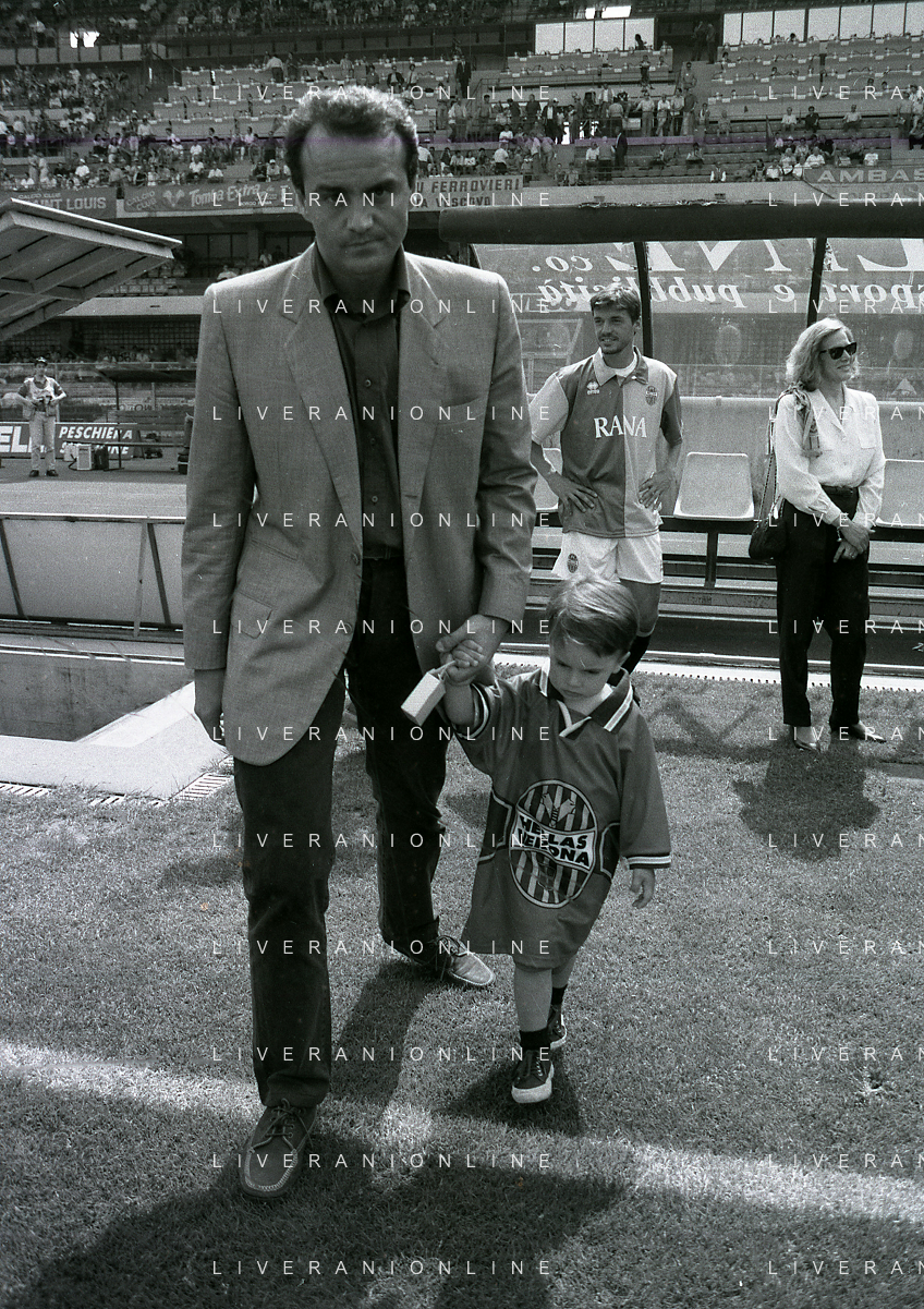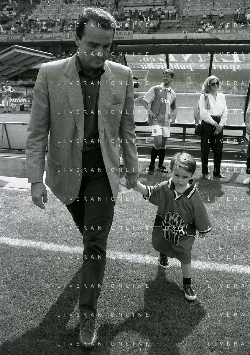 RETROSPETTIVA ALBERTO MAZZI PRESIDENTE VERONA CALCIO NELLA FOTO ALBERTO MAZZI ALLO STADIO BENTEGODI DI VERONA NELL'ANNO 1996 CON IL FIGLIO AG ALDO LIVERANI SAS