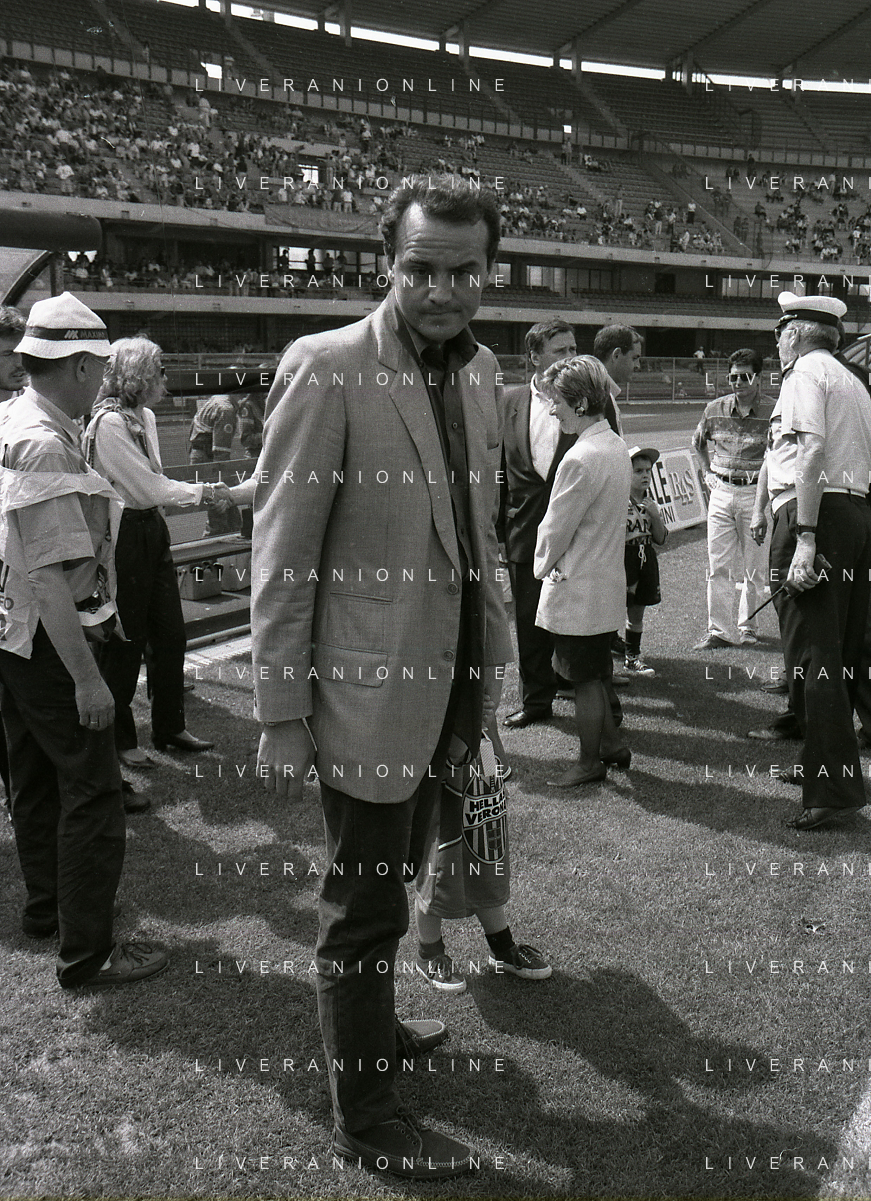 RETROSPETTIVA ALBERTO MAZZI PRESIDENTE VERONA CALCIO NELLA FOTO ALBERTO MAZZI ALLO STADIO BENTEGODI DI VERONA NELL'ANNO 1996 CON IL GEN CIRO DI MARTINO DIRIGENTE ROMA CALCIO AG ALDO LIVERANI SAS