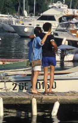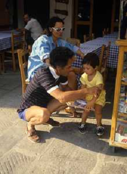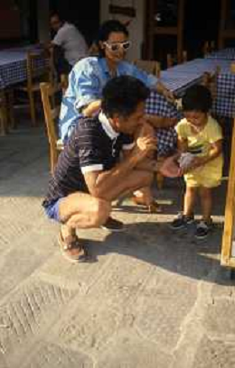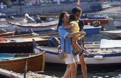 DIAP-RETROSPETTIVA ROSANNA SCHIAFFINO ATTRICE NELLA FOTO ROSANNA SCHIAFFINO CON GIORGIO FALCK E IL FIGLIO GUIDO NELL'ANNO 1983 A PORTOFINO AG ALDO LIVERANI SAS