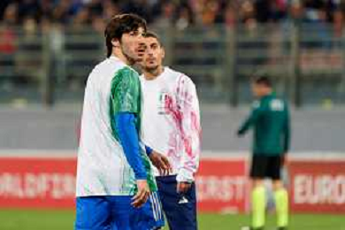 Wilfried Gnonto (Italy) and Sandro Tonali (Italy) during the EURO 2024 qualifying football match between Malta vs Italy on March 26, 2023 at the Stadium Ta'Qali in Malta, foto Emmanuele Mastrodonato/ag. Aldo Liverani sas