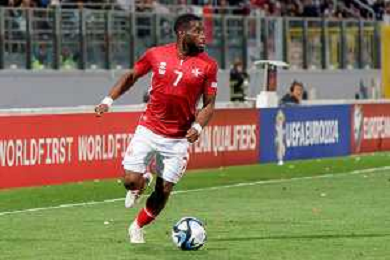 Joseph Mbong (Malta) during the EURO 2024 qualifying football match between Malta vs Italy on March 26, 2023 at the Stadium Ta'Qali in Malta, foto Emmanuele Mastrodonato/ag. Aldo Liverani sas