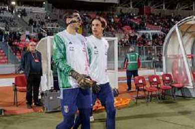 Alex Meret (Italy) and Marco Carnesecchi (Italy) during the EURO 2024 qualifying football match between Malta vs Italy on March 26, 2023 at the Stadium Ta'Qali in Malta, foto Emmanuele Mastrodonato/ag. Aldo Liverani sas