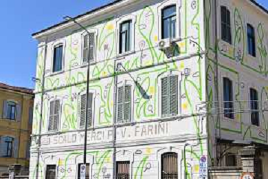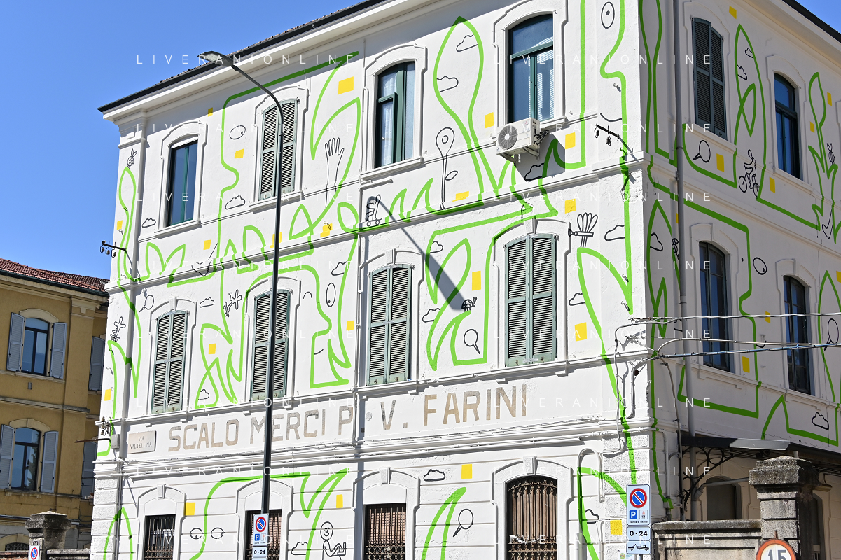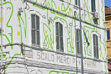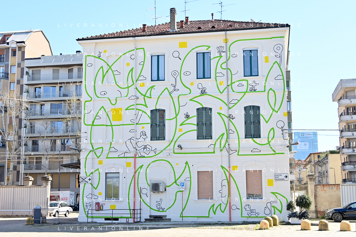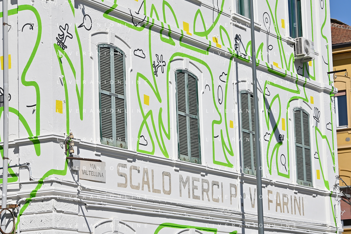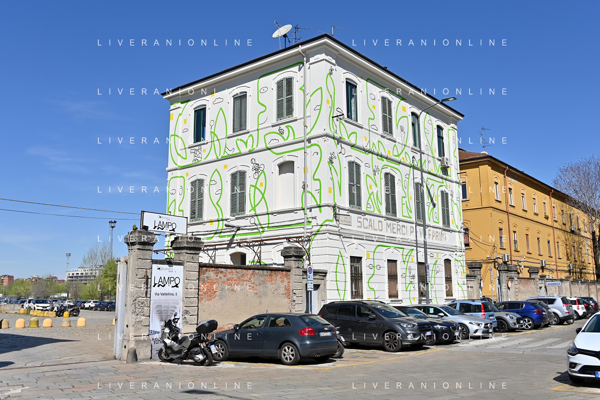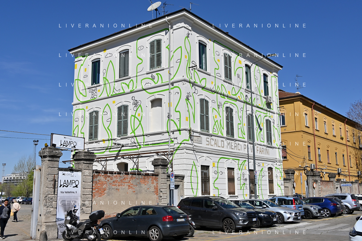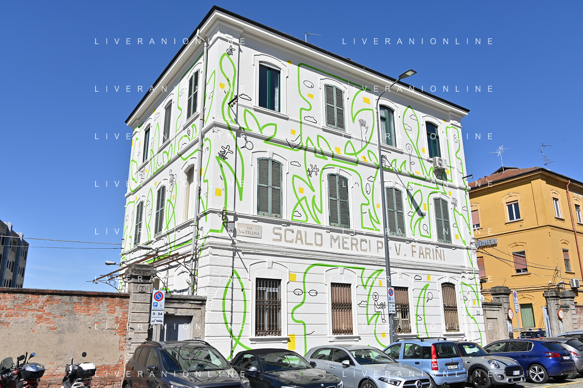 TVRG Progetto Take Your Time nella foto l'opera realizzata da Jonathan Calugi sulla palazzina posta all'ingresso dell'ex Scalo Farini Milano 28-03-2023 Presentazione presso l'ex Scalo Farini del progetto Take Your Time Polo Urbano del Gruppo FS Italiane foto Roberto Garavaglia/ag. Aldo Liverani sas/ AGENZIA ALDO LIVERANI SAS