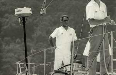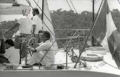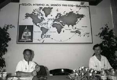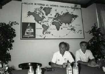 RETROSPETTIVA GIORGIO FALK INDUSTRIALE NELLA FOTO GIORGIO FALK NELL'ANNO 1989 A PORTOFINO IN CONFERENZA STAMPA PER UNA REGATA AG ALDO LIVERANI SAS