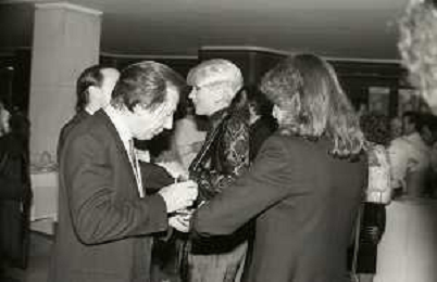 RETROSPETTIVA SILVIO BERLUSCONI IMPRENDITORE NELLA FOTO SYLVA KOSCINA CON SILVIO BERLUSCONI E MIKE BONGIORNO NELL'ANNO 1980 AG ALDO LIVERANI SAS