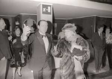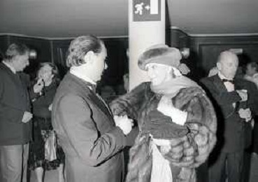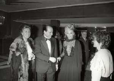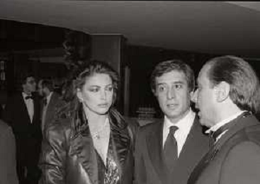 RETROSPETTIVA SILVIO BERLUSCONI IMPRENDITORE NELLA FOTO SILVIO BERLUSCONI CON VALENTINA CORTESE ALLA PRIMA DELLA COMMEDIA“MARIA STUARDA“NELL'ANNO 1983 AG ALDO LIVERANI SAS