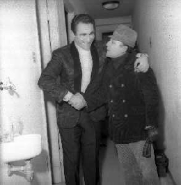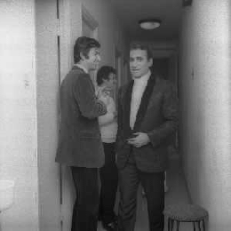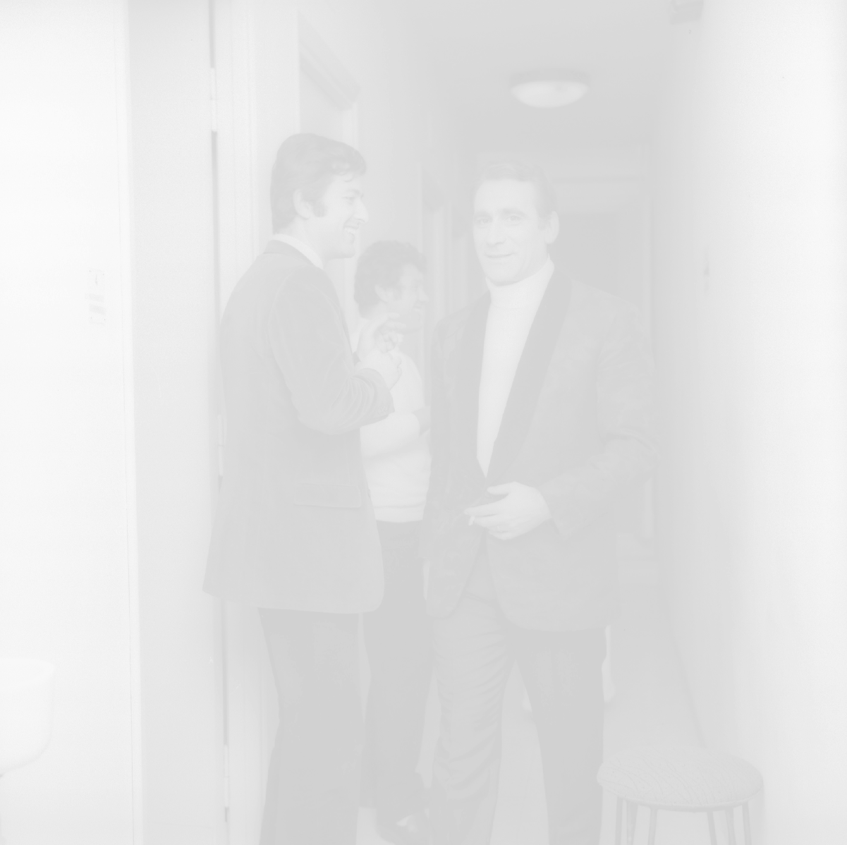 RETROSPETTIVA ALBERTO LUPO ATTORE NELLA FOTO ALBERTO LUPOCON CLAUDIO VILLA A ROMA TRASMISSIONE TELEVISIVA “PREMIATISSIMA“ NELL'ANNO 1968 AG ALDO LIVERANI SAS