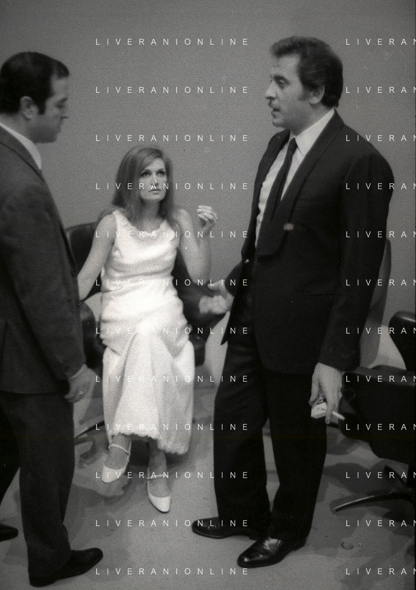 RETROSPETTIVA ALBERTO LUPO ATTORE NELLA FOTO DOMENICO MODUGNO E DALIDA A ROMA TRASMISSIONE TELEVISIVA “PREMIATISSIMA“ NELL'ANNO 1968 AG ALDO LIVERANI SAS