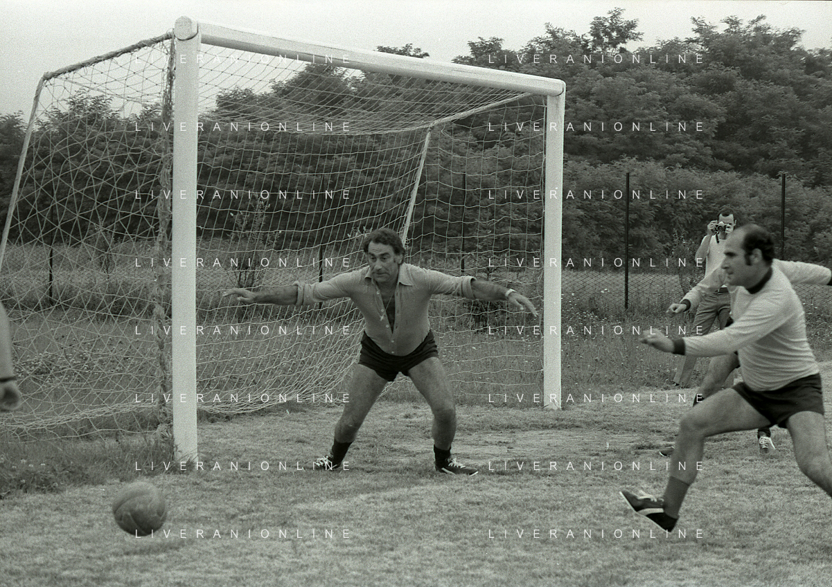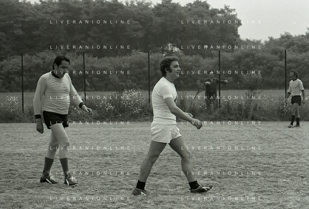 RETROSPETTIVA ALBERTO LUPO ATTORE NELLA FOTO ALBERTO LUPO CON MINO REITANO NELL'ANNO 1972 AD AGRATE BRIANZA PER UNA PARTITA AMICHEVOLE AG ALDO LIVERANI SAS