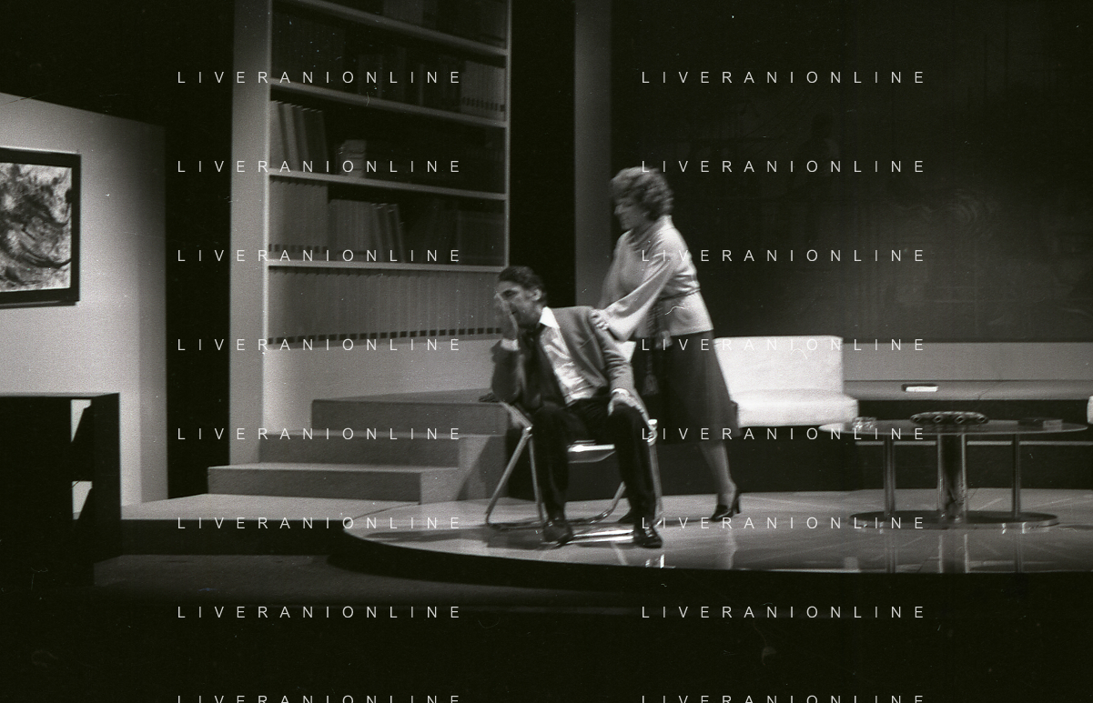 RETROSPETTIVA ALBERTO LUPO ATTORE NELLA FOTO ALBERTO LUPO NELL'ANNO 1977 A MILANO TEATRO SAN BABILA NELLA COMMEDIA“CHI HA PAURA DI VIRGINIA WOLFF“ AG ALDO LIVERANI SAS