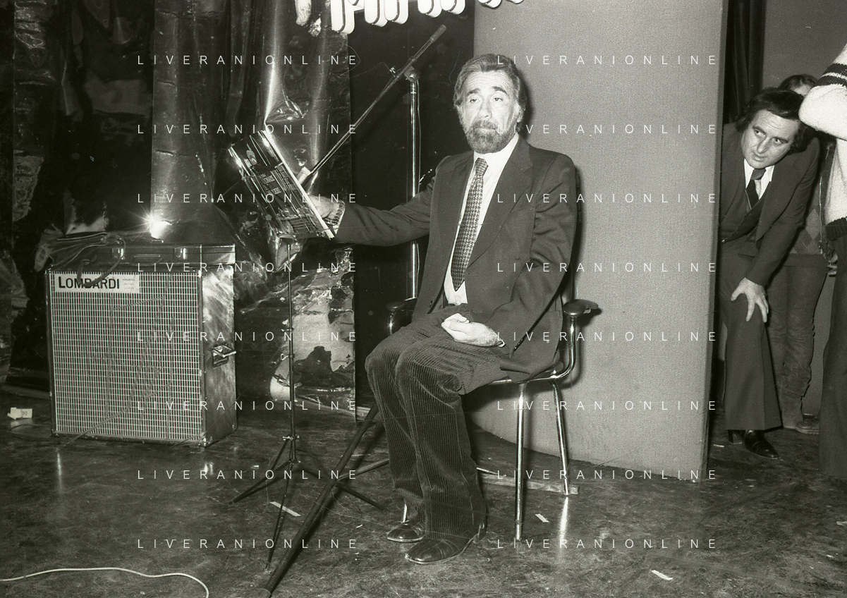 RETROSPETTIVA ALBERTO LUPO ATTORE NELLA FOTO ALBERTO LUPO NELL'ANNO 1979 A REGGIO EMILIA ALLA DISCOTECA MARABU AL “10 PREMIO INTERNAZIONALE DEL PAROLIERE“ AG ALDO LIVERANI SAS