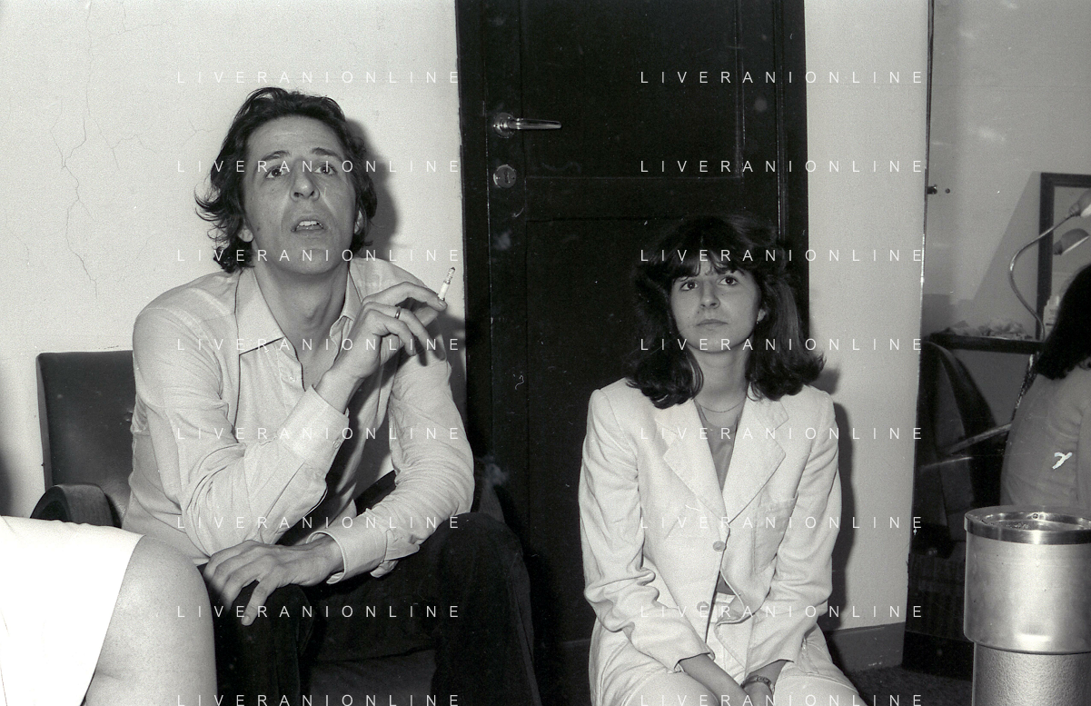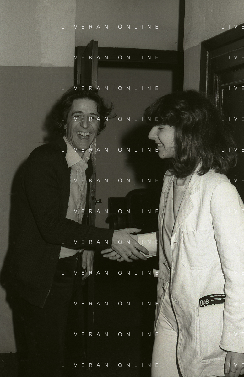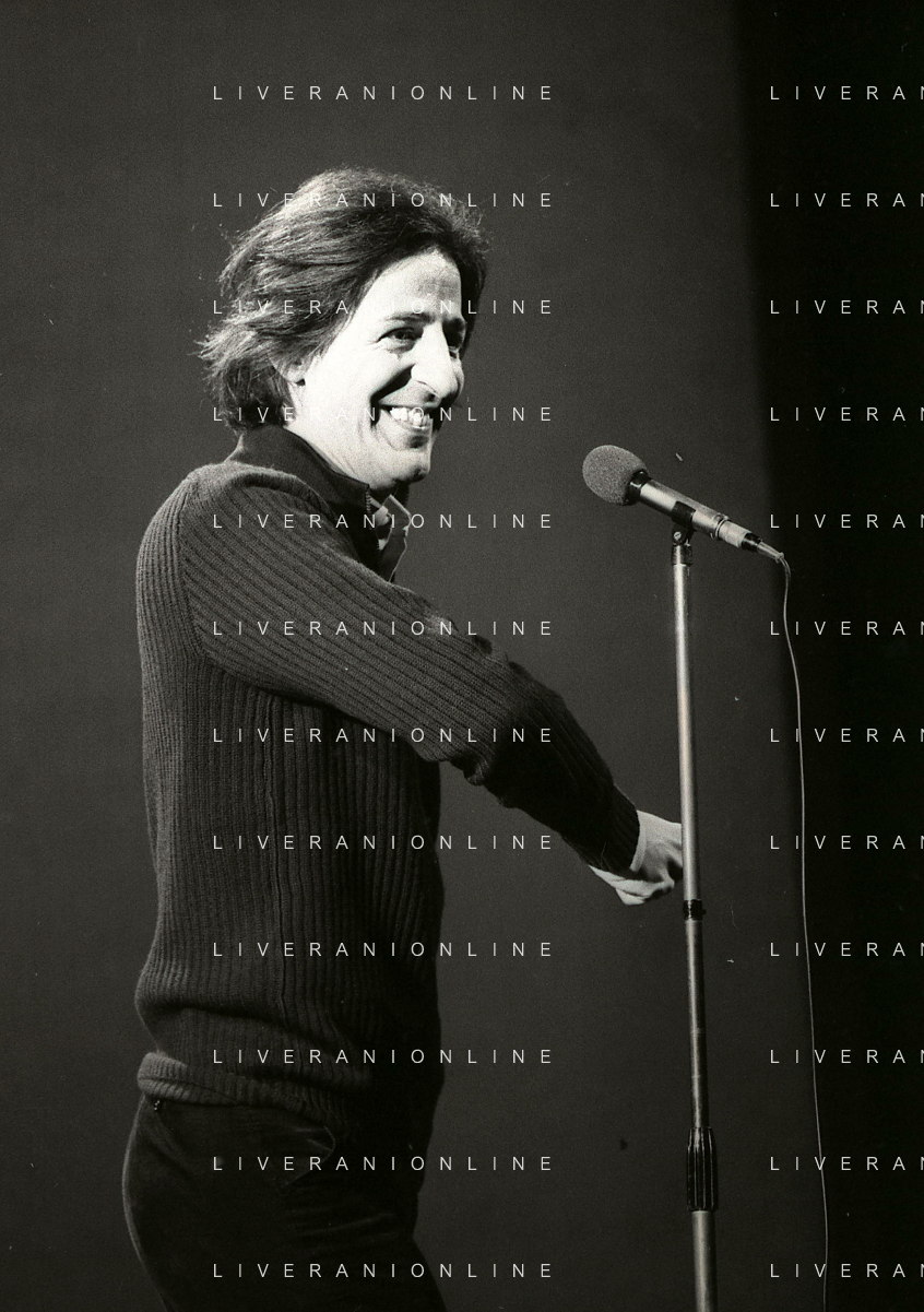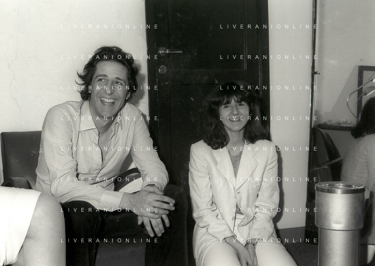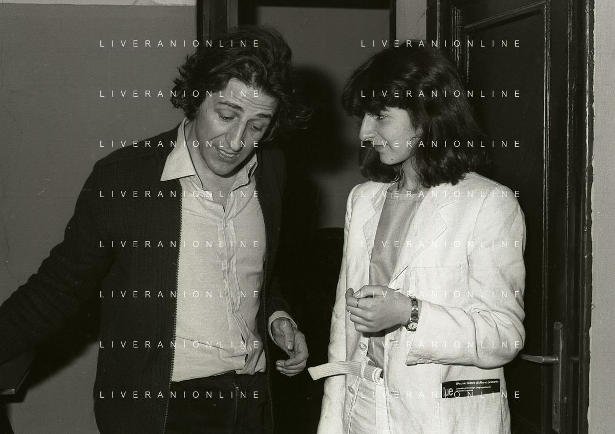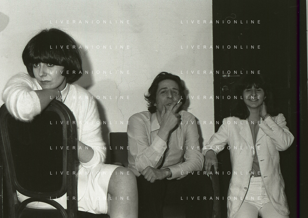 RETROSPETTIVA GIORGIO GABER CANTANTE NELLA FOTO GIORGIO GABER NELL'ANNO 1980 A MILANO TEATRO LIRICO CON OMBRETTA COLLI E LA FIGLIA DALIA AG ALDO LIVERANI SAS