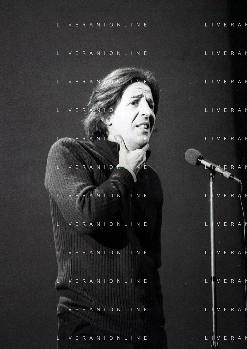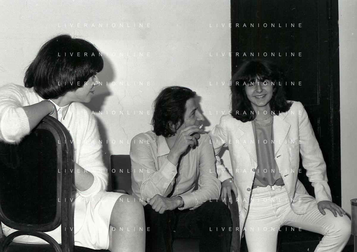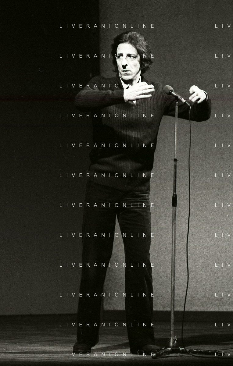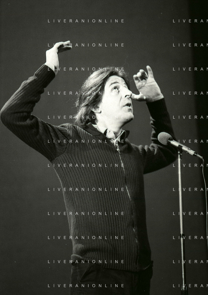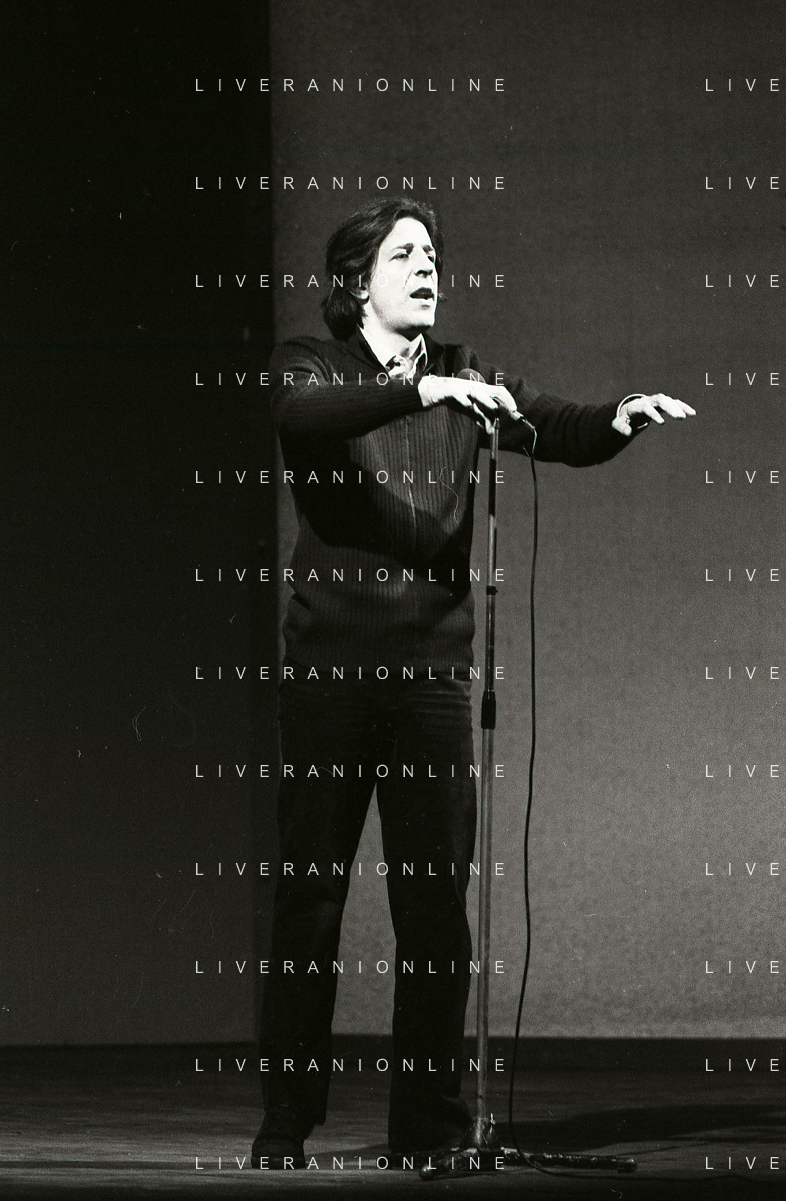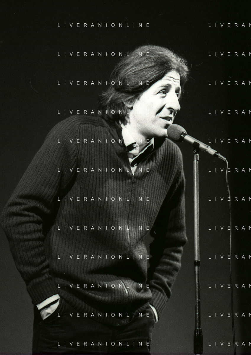 RETROSPETTIVA GIORGIO GABER CANTANTE NELLA FOTO GIORGIO GABER NELL'ANNO 1980 A MILANO TEATRO LIRICO CON OMBRETTA COLLI E LA FIGLIA DALIA AG ALDO LIVERANI SAS
